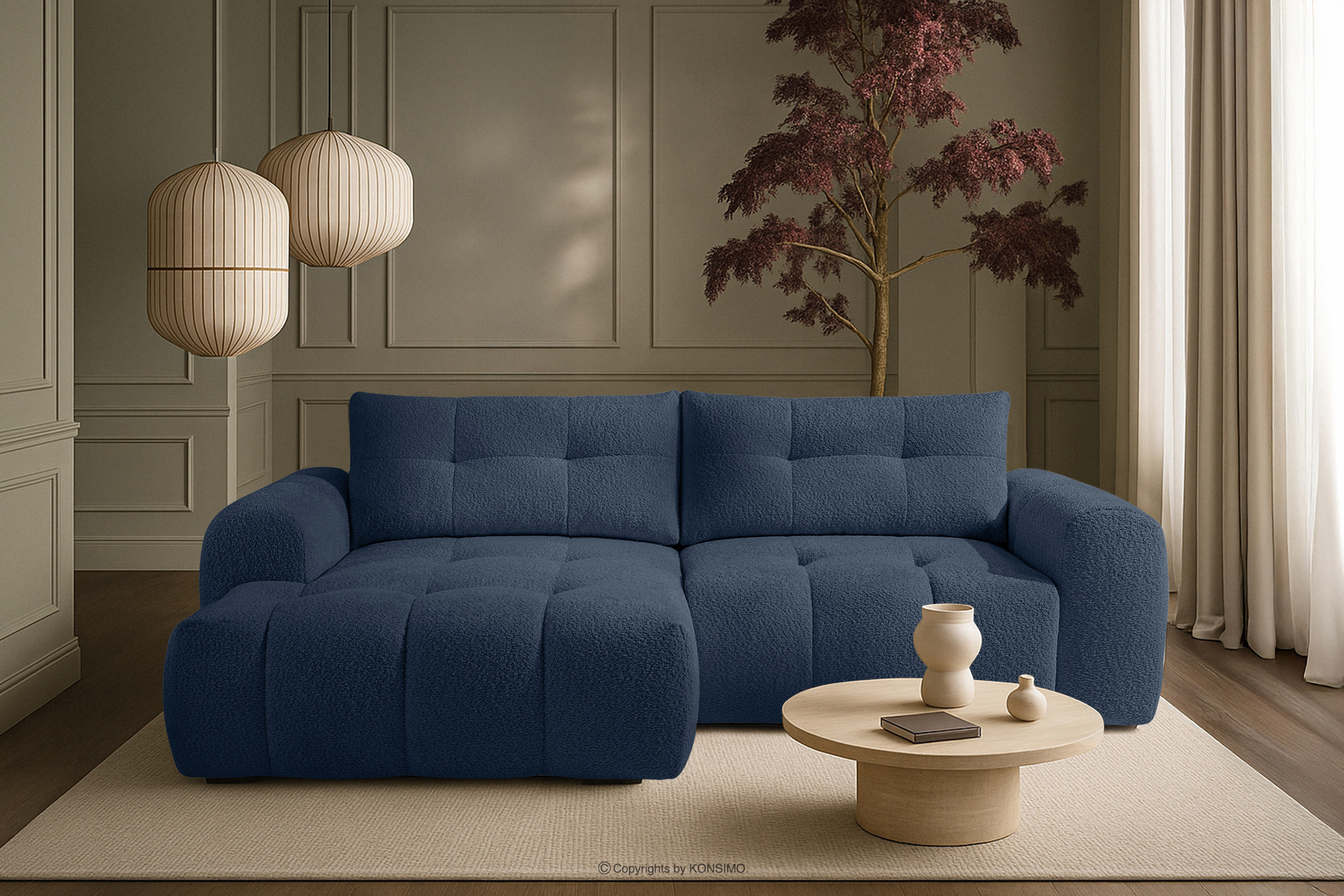 produktu Japandi boucle prošívaná rohová pohovka levá tmavě modrá
