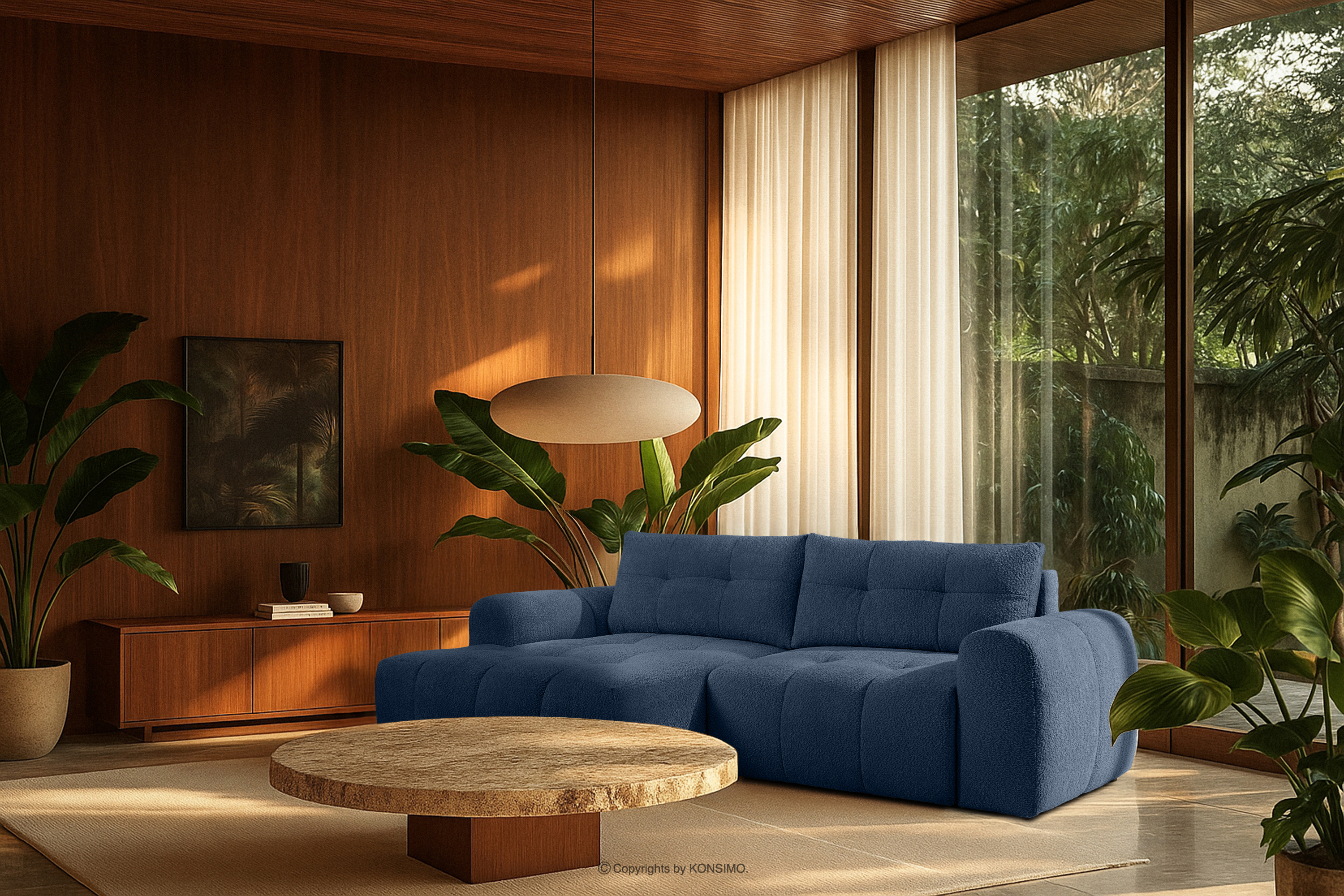 RAVIA Objav celú kolekciu Japandi boucle prošívaná rohová pohovka levá tmavě modrá- farba tmavě modrá