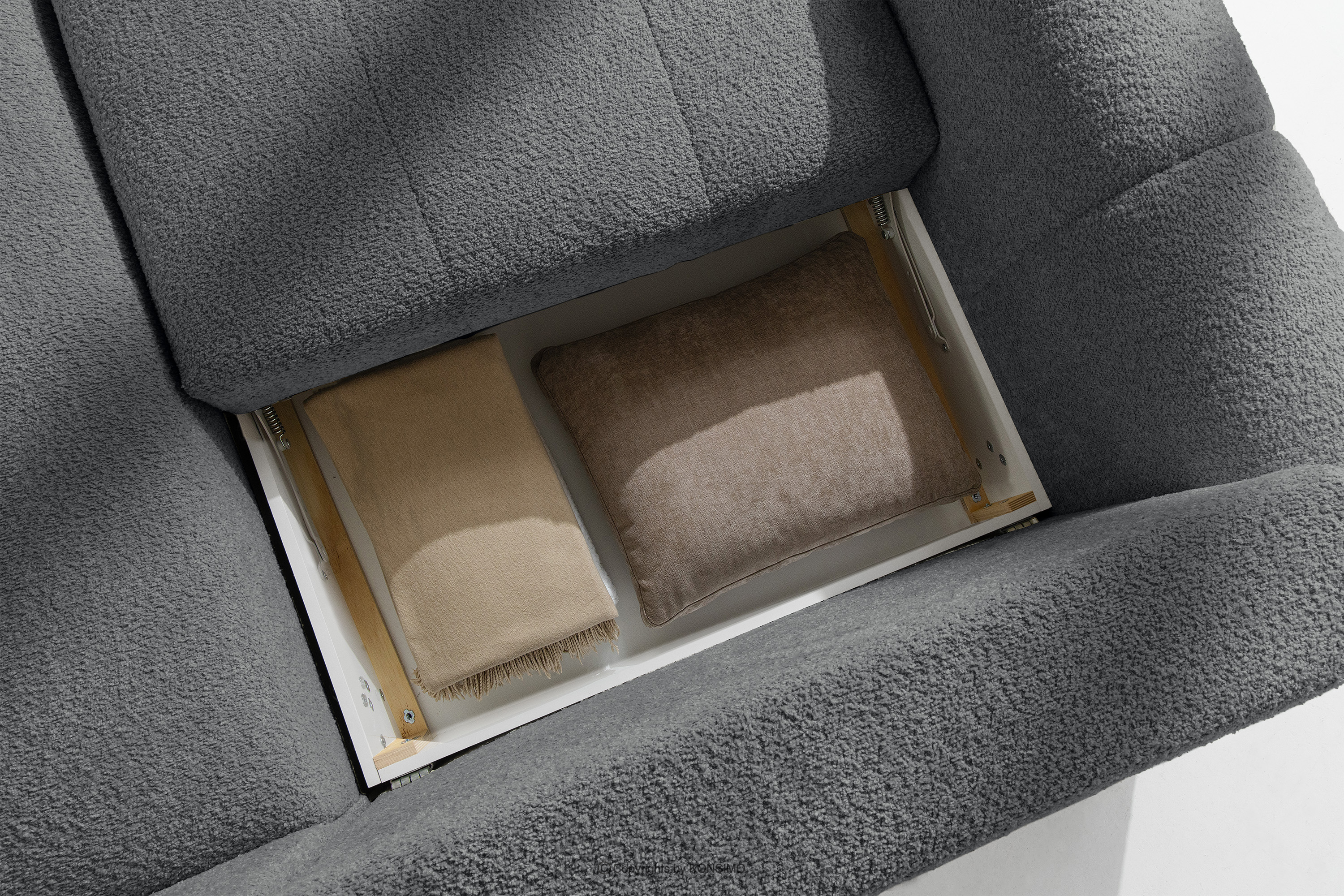 Japandi obývací souprava ve stylu boucle tmavě šedá spája v sebe strohú eleganciu japonského dizajnu s útulným minimalizmom škandinávskych interiérov. Čalúnená výnimočnou látkou boucle, ktorá nielenže nadchne svojou štruktúrou a mäkkosťou, ale dodáva nábytku luxusný charakter, kolekcia RAVIA vnáša do každej miestnosti pocit pokoja a harmónie. Jemné, nerovnomerné spleteniny boucle vytvárajú na povrchu nábytku jemné vzory, ktoré krásne odrážajú svetlo, zdôrazňujú hĺbku farieb a dodávajú nábytku jedinečný, remeselný vzhľad.