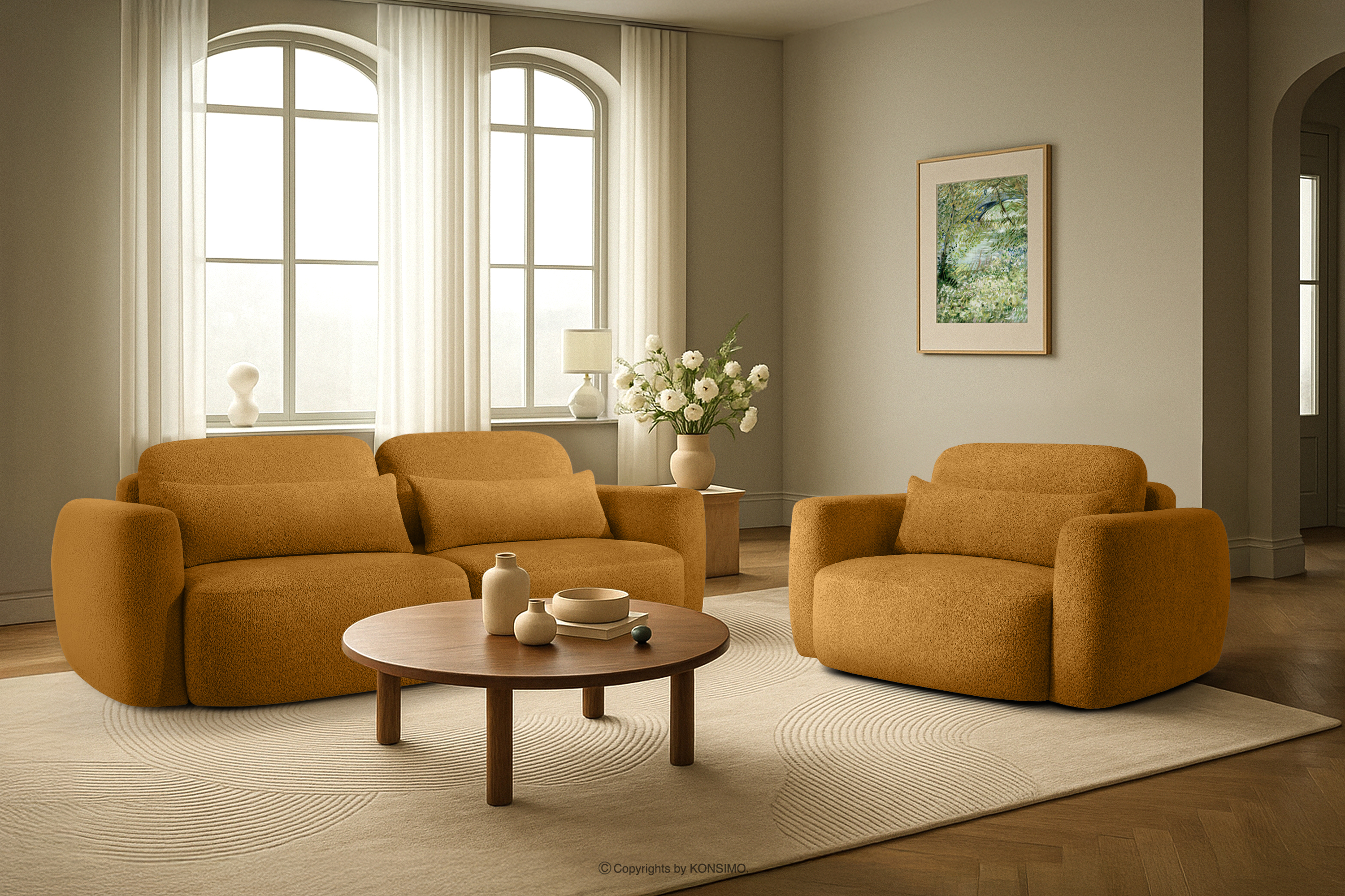 ELOSA Objav celú kolekciu Kreslo v japonskom štýle v medovej bouclé tkanine- farba medová