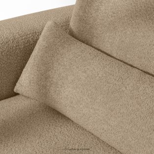 Kreslo Japandi v béžovej bouclé tkanine prináša revolúciu v poňatí relaxácie. Jeho srdcom je inovatívne sedadlo, ktorého jedinečný vypuklý tvar polmesiaca je nielen pútavý, ale predovšetkým poskytuje bezkonkurenčné pohodlie. Vďaka použitiu vlnitých pružín typu B a vysokokvalitnej peny HR30 je sedadlo stredne tvrdé a zároveň mimoriadne pružné a mäkké. Táto kombinácia zaručuje dokonalé prispôsobenie, minimalizuje tlakové body a zabezpečuje relaxáciu na najvyššej úrovni.