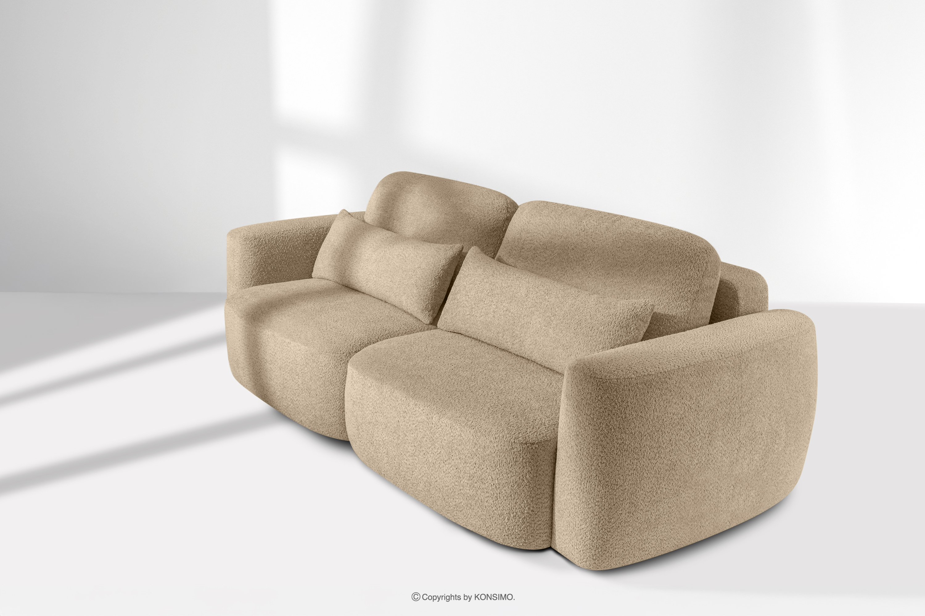 ELOSA Objav celú kolekciu 3-miestna pohovka Japandi z béžovej bouclé látky- farba béžová