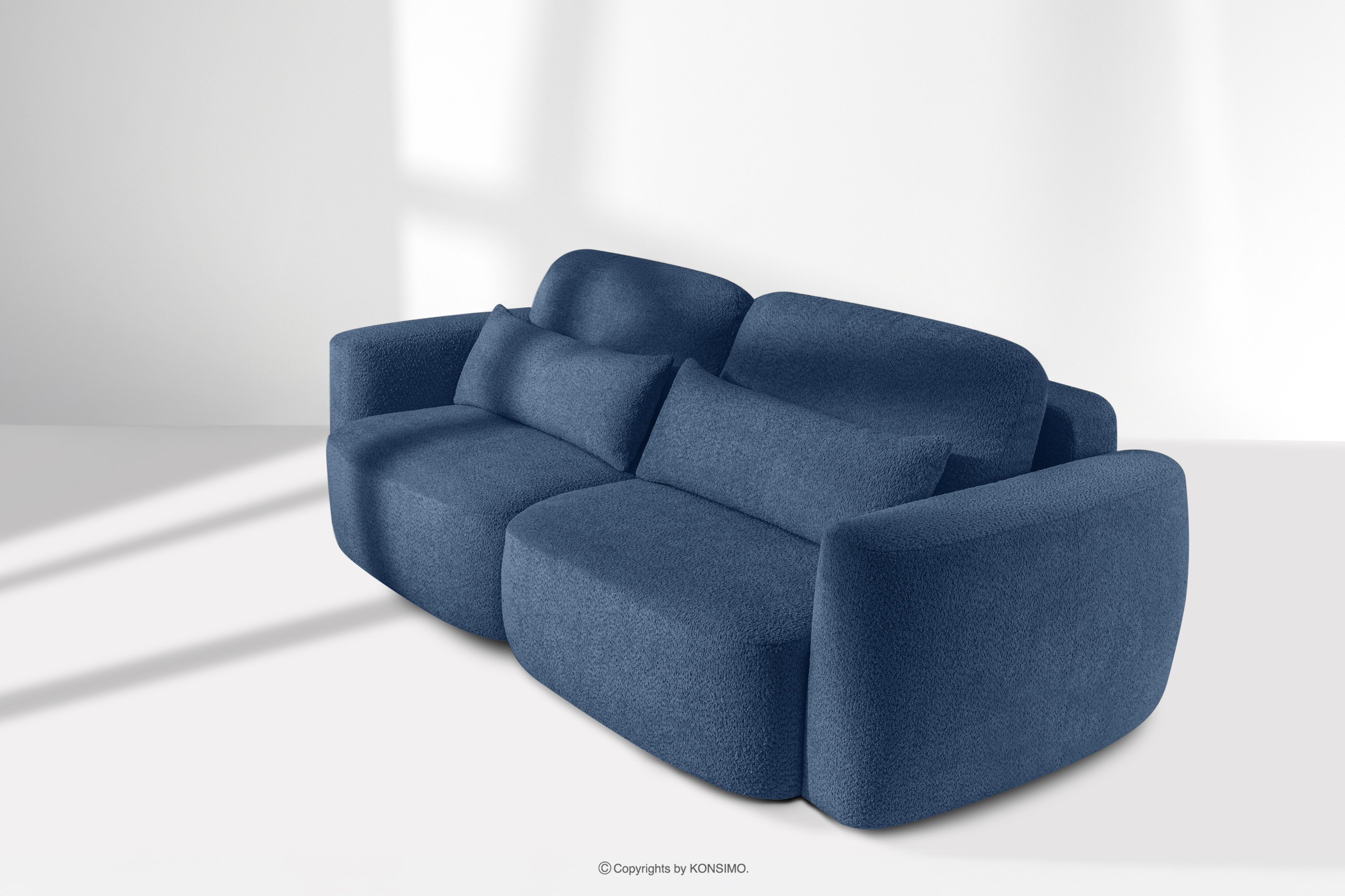 Trojmiestna pohovka v japonskom štýle z tmavomodrej bouclé látky ELOSA - farba tmavě modrá