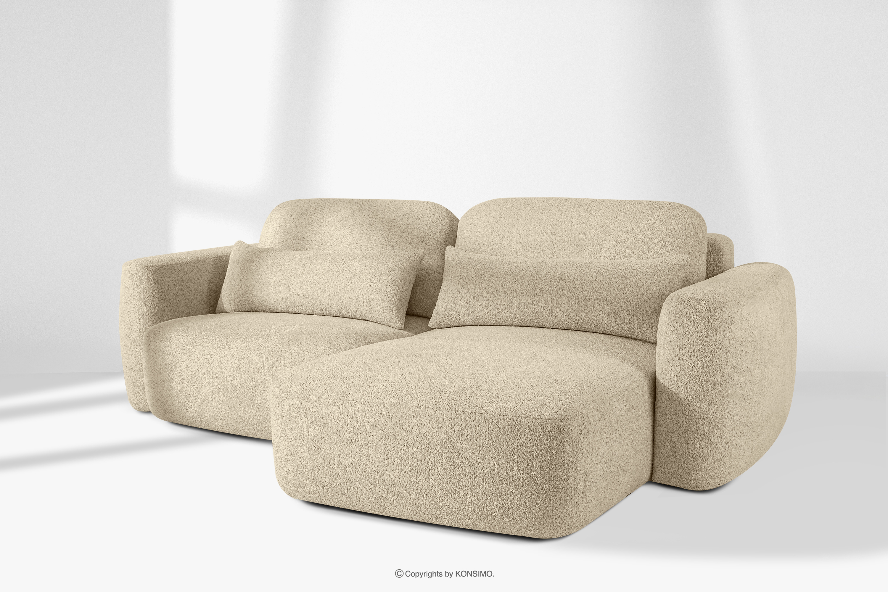 Rohová pohovka Japandi z bouclé tkaniny pravá svetlo béžová