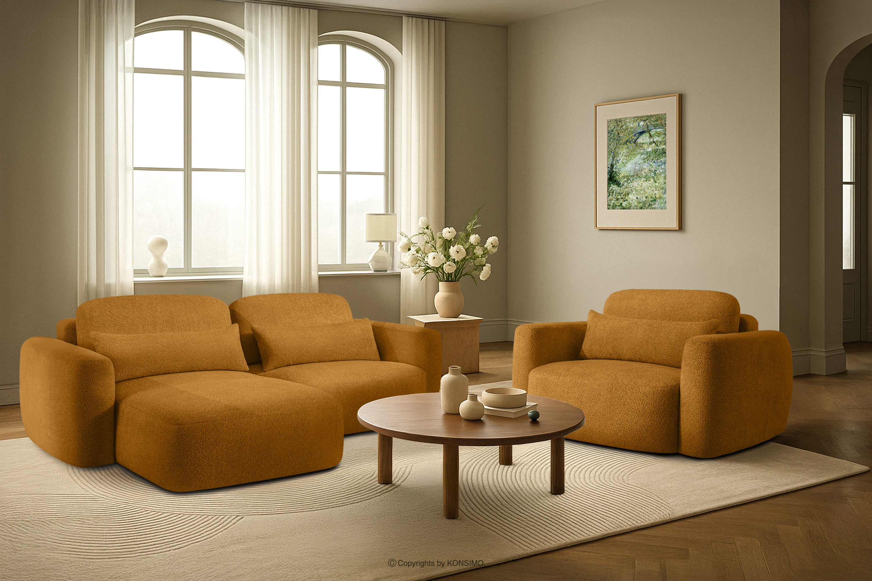 ELOSA Objav celú kolekciu Rohová pohovka v japonskom štýle z bouclé tkaniny ľavá medová- farba medová