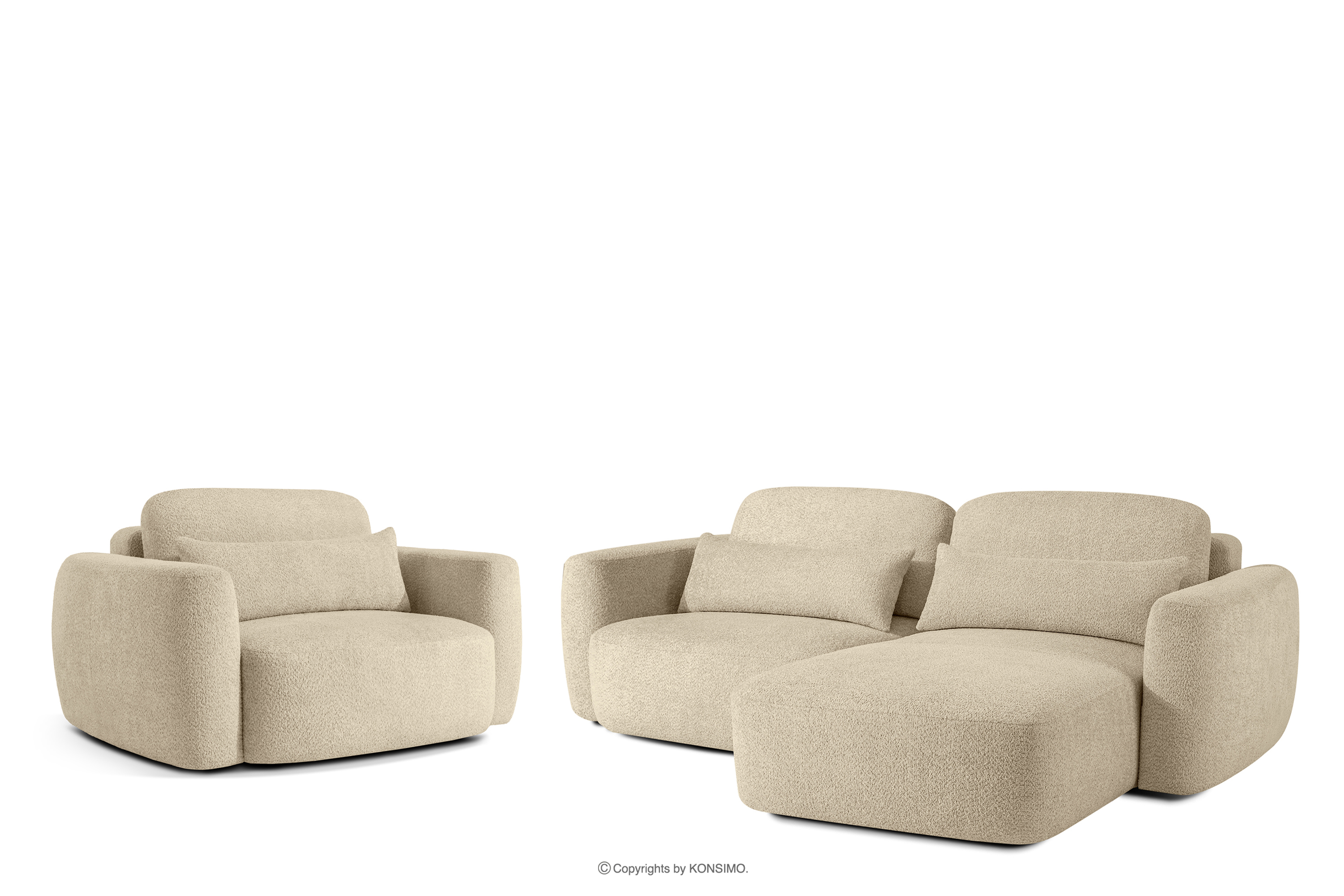 produktu Pravá rohová pohovka a kreslo zo svetlo béžovej bouclé látky