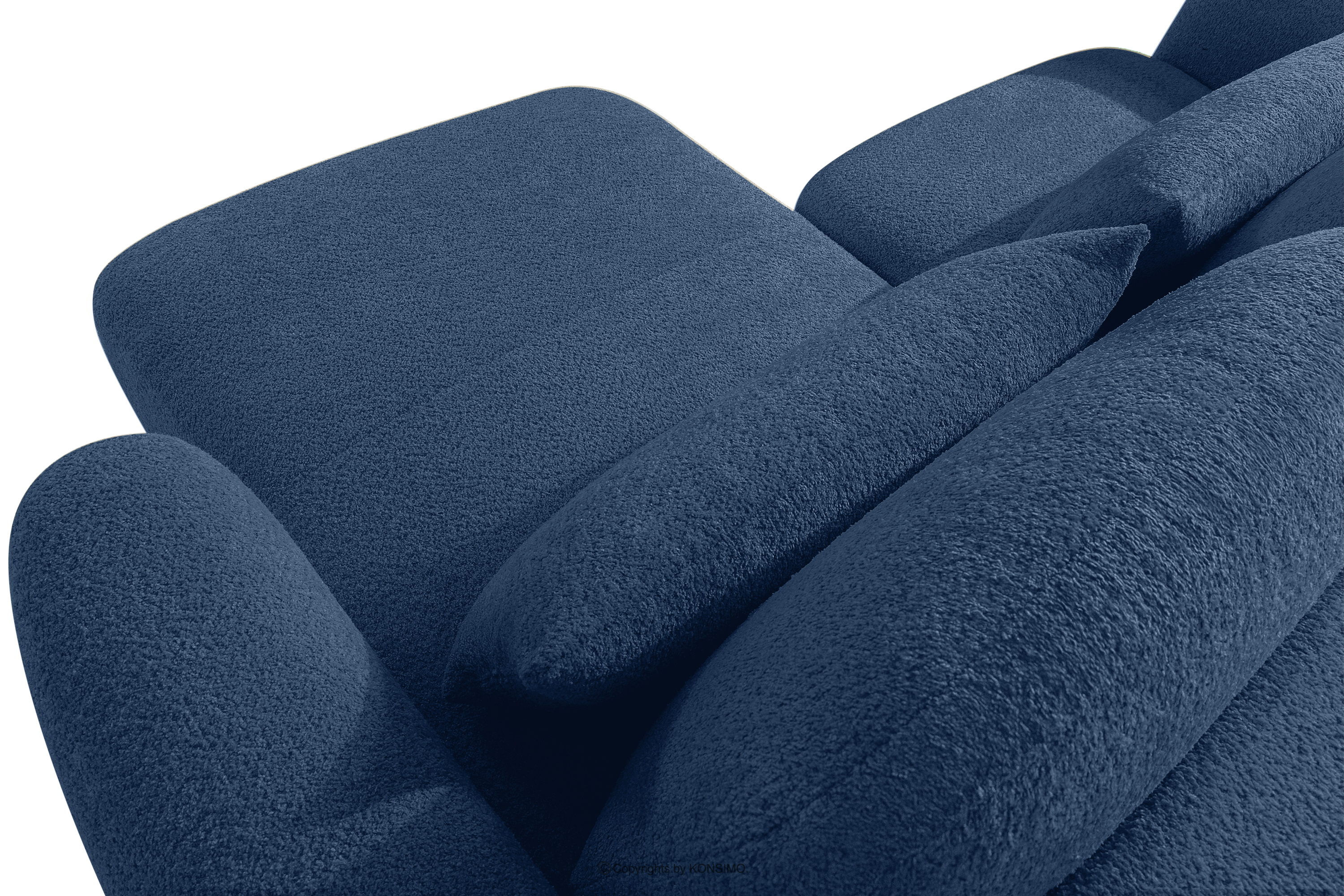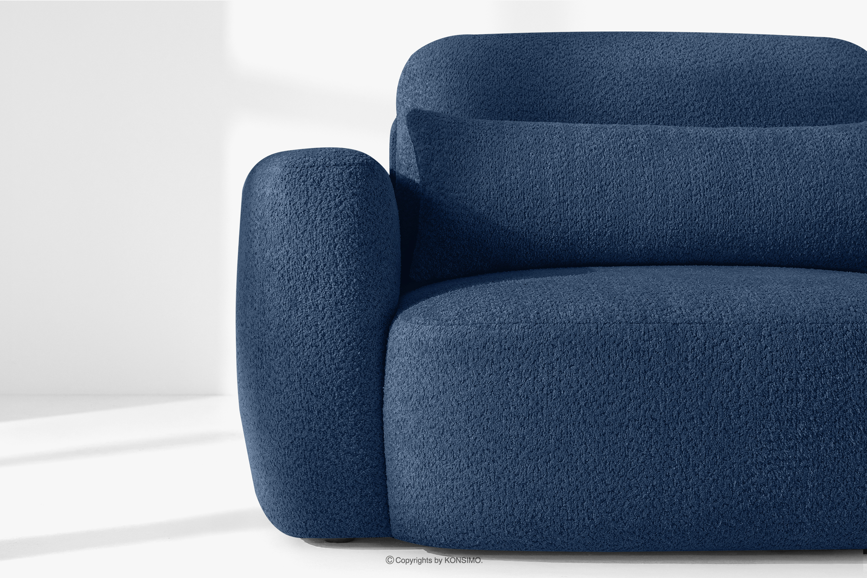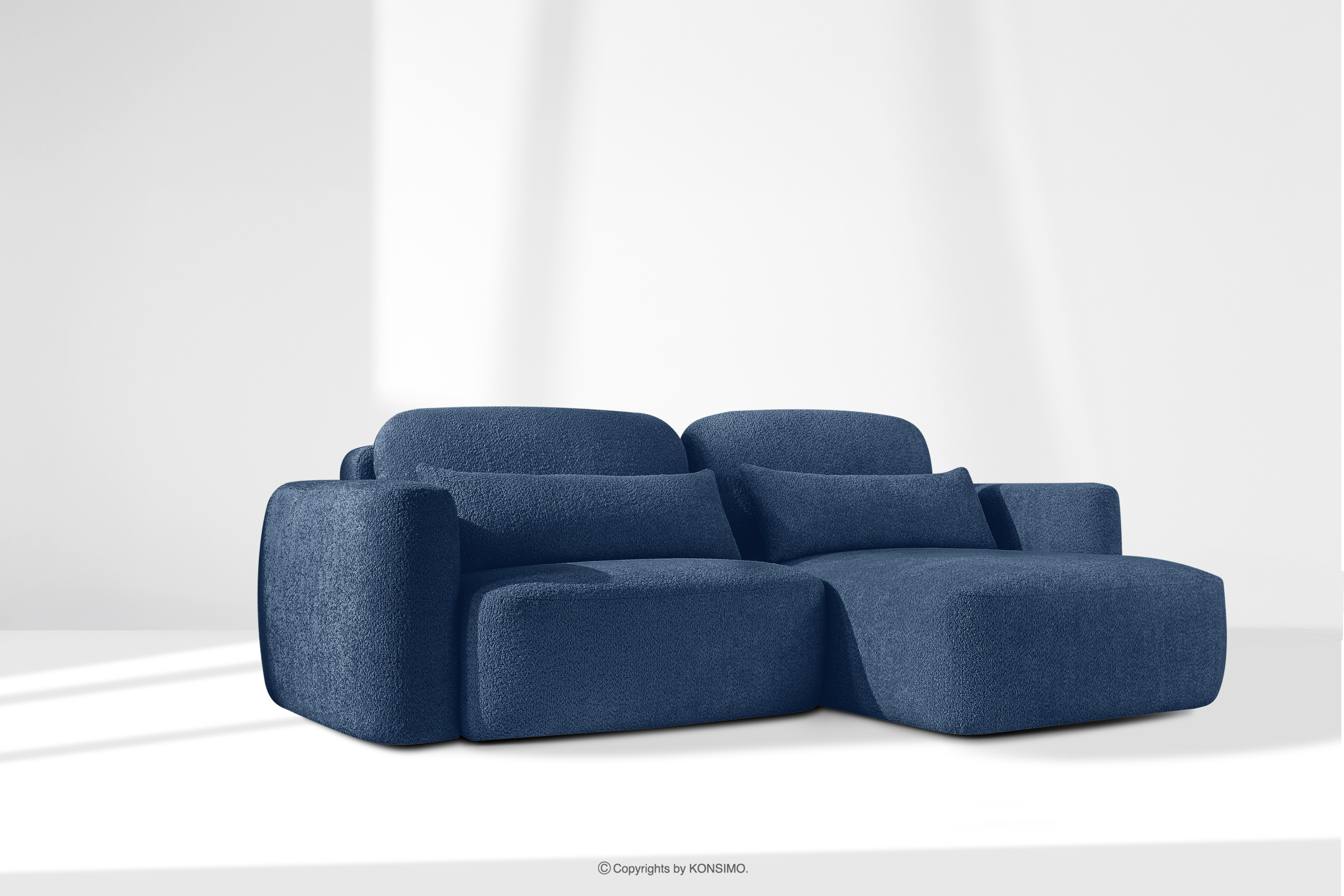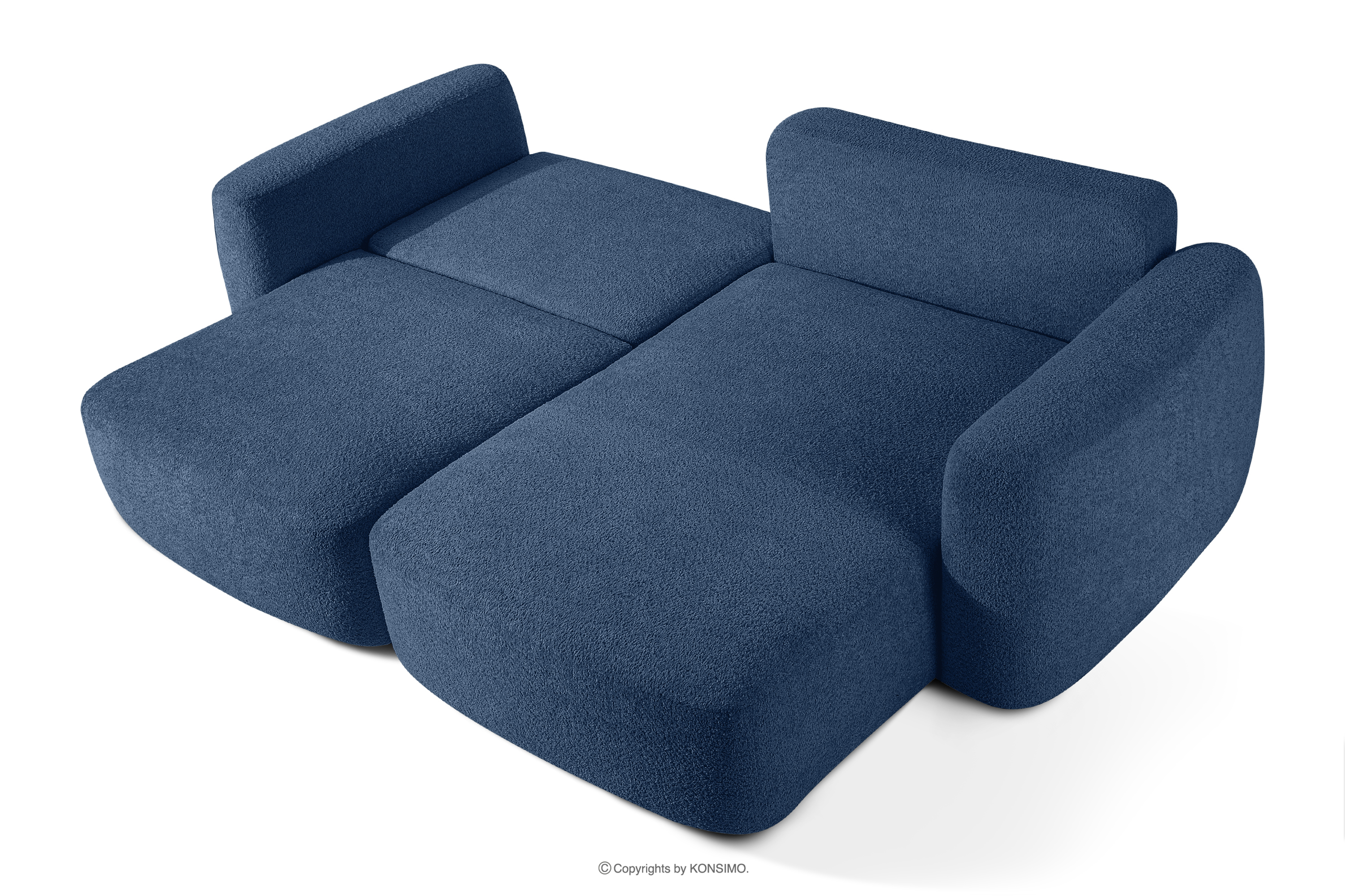 ELOSA Objav celú kolekciu Pravá rohová pohovka a kreslo v japonskom štýle tmavomodrá bouclé látka- farba tmavě modrá