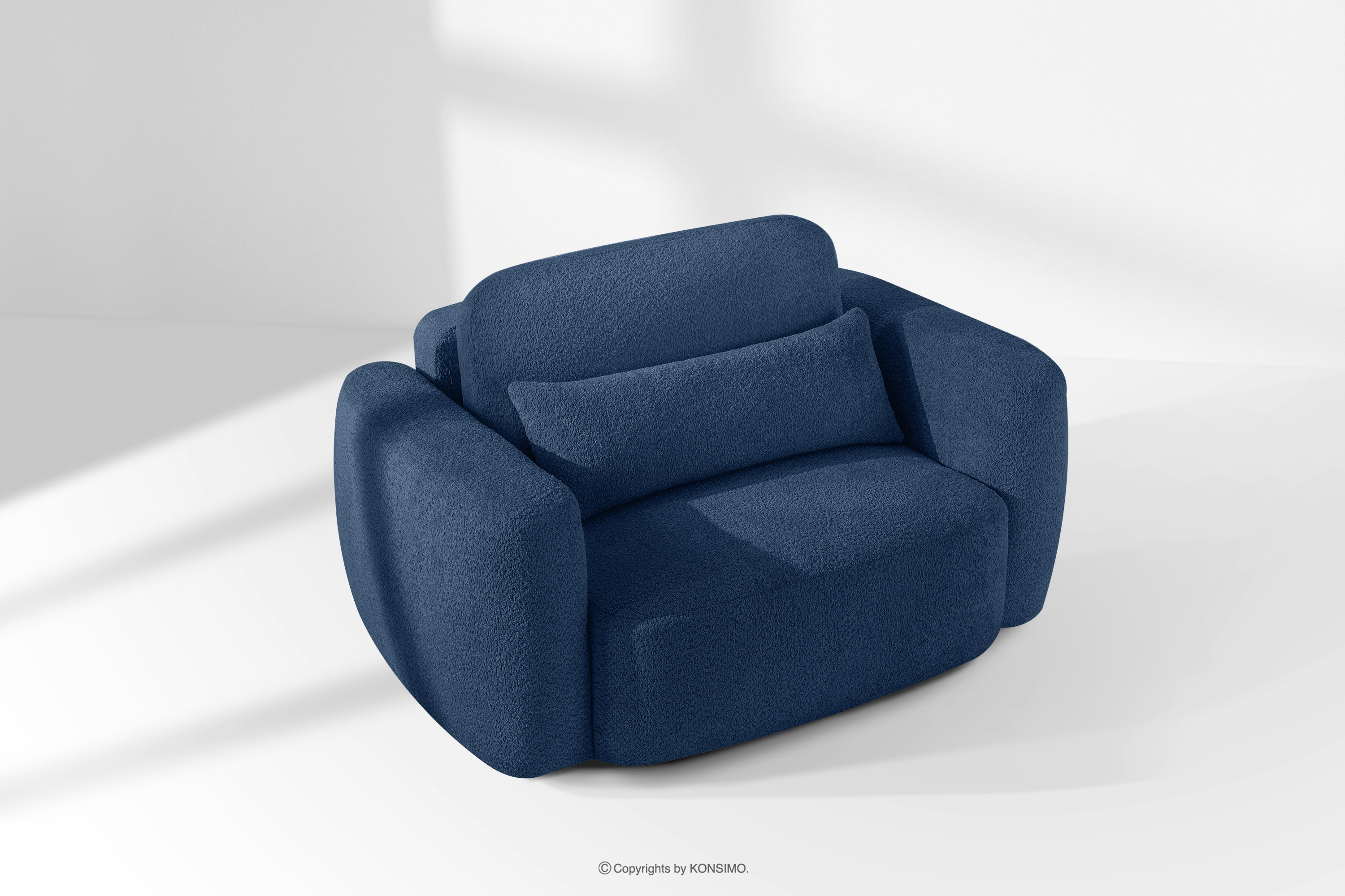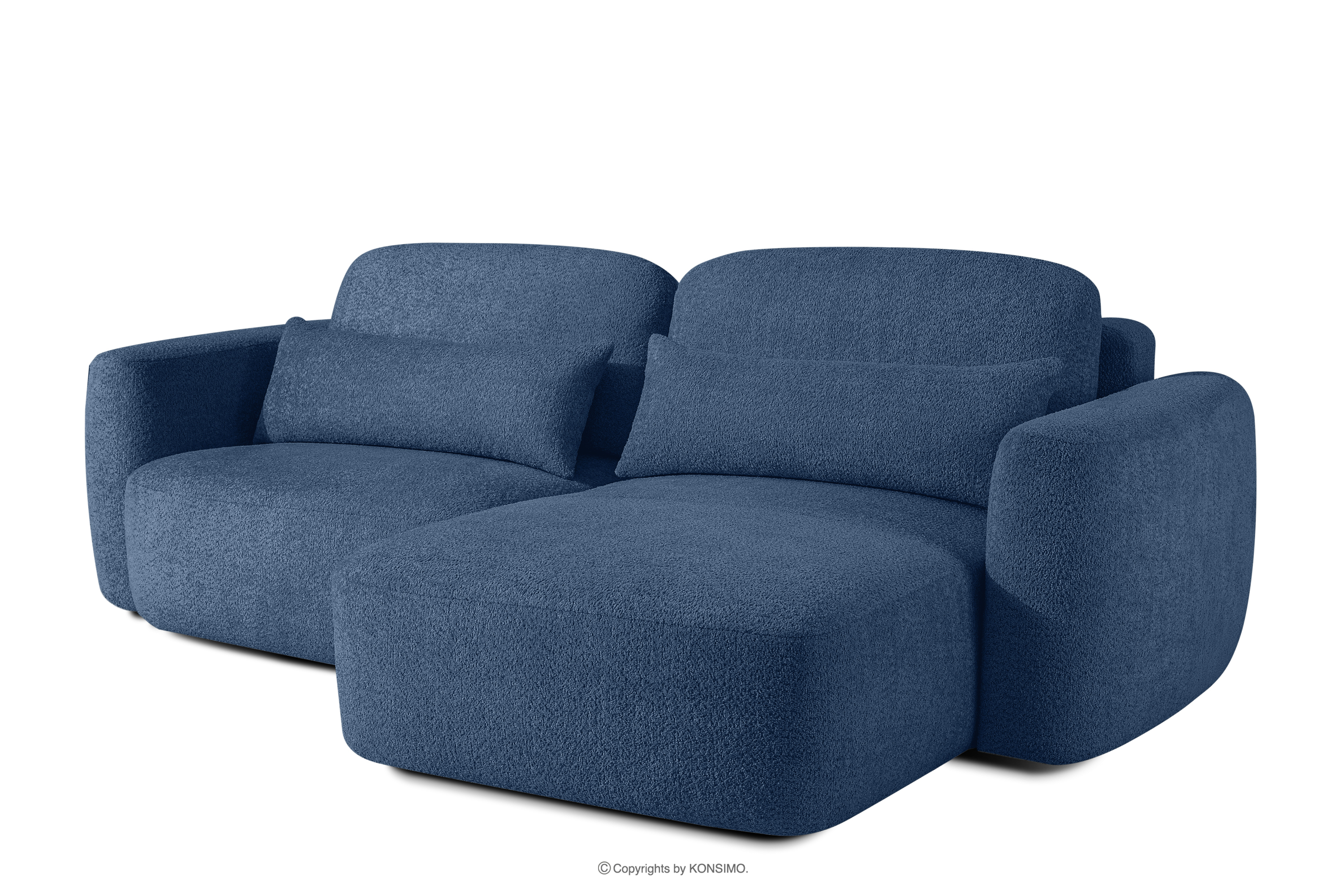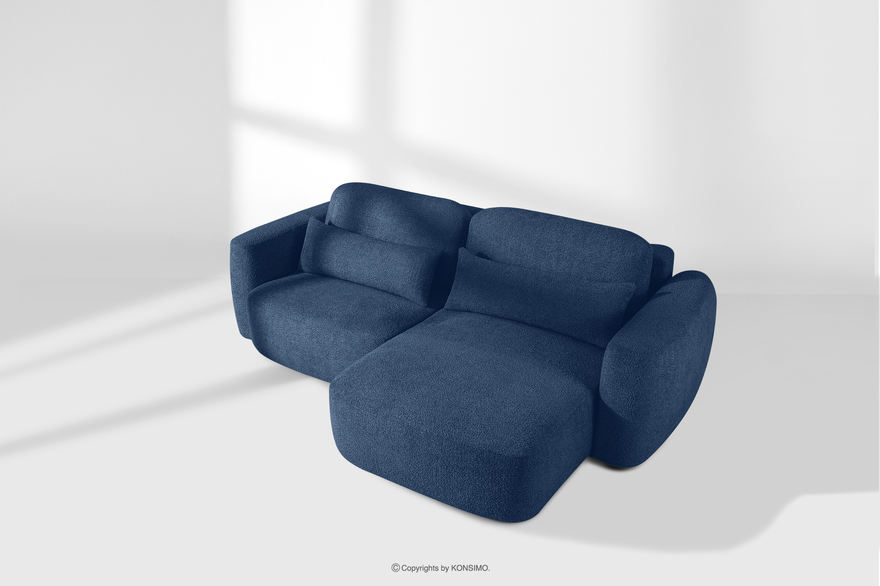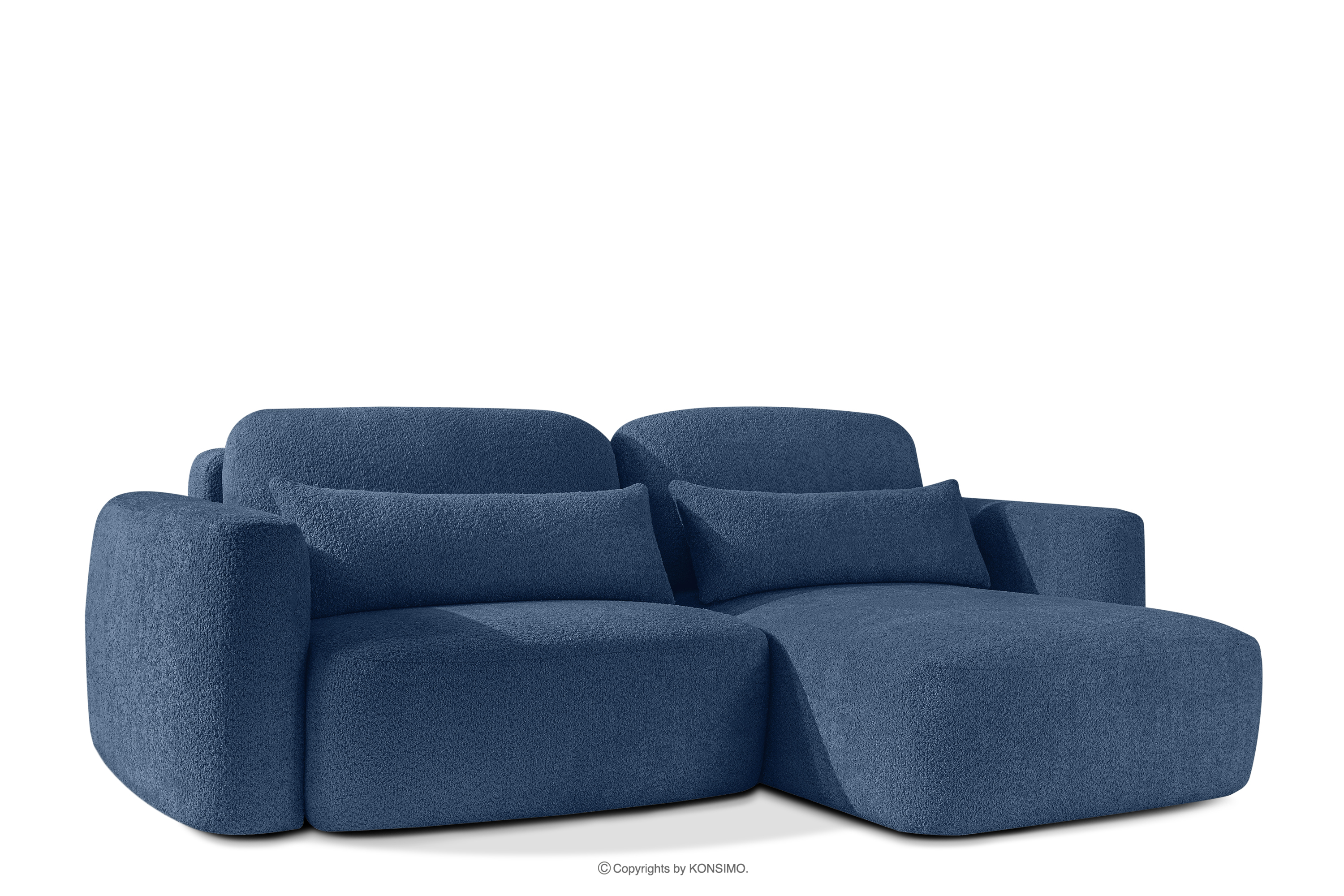 ELOSA Objav celú kolekciu Pravá rohová pohovka a kreslo v japonskom štýle tmavomodrá bouclé látka- farba tmavě modrá