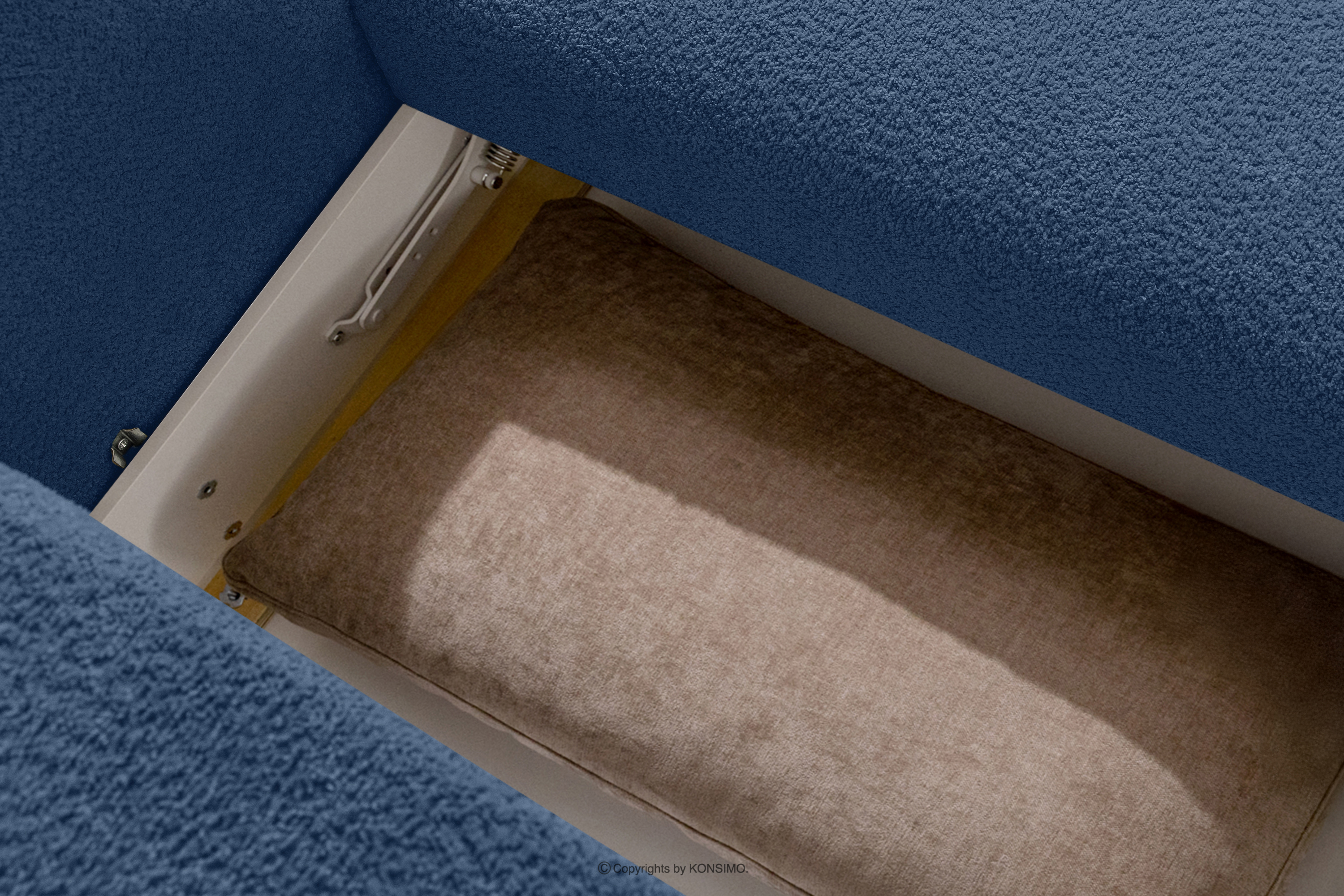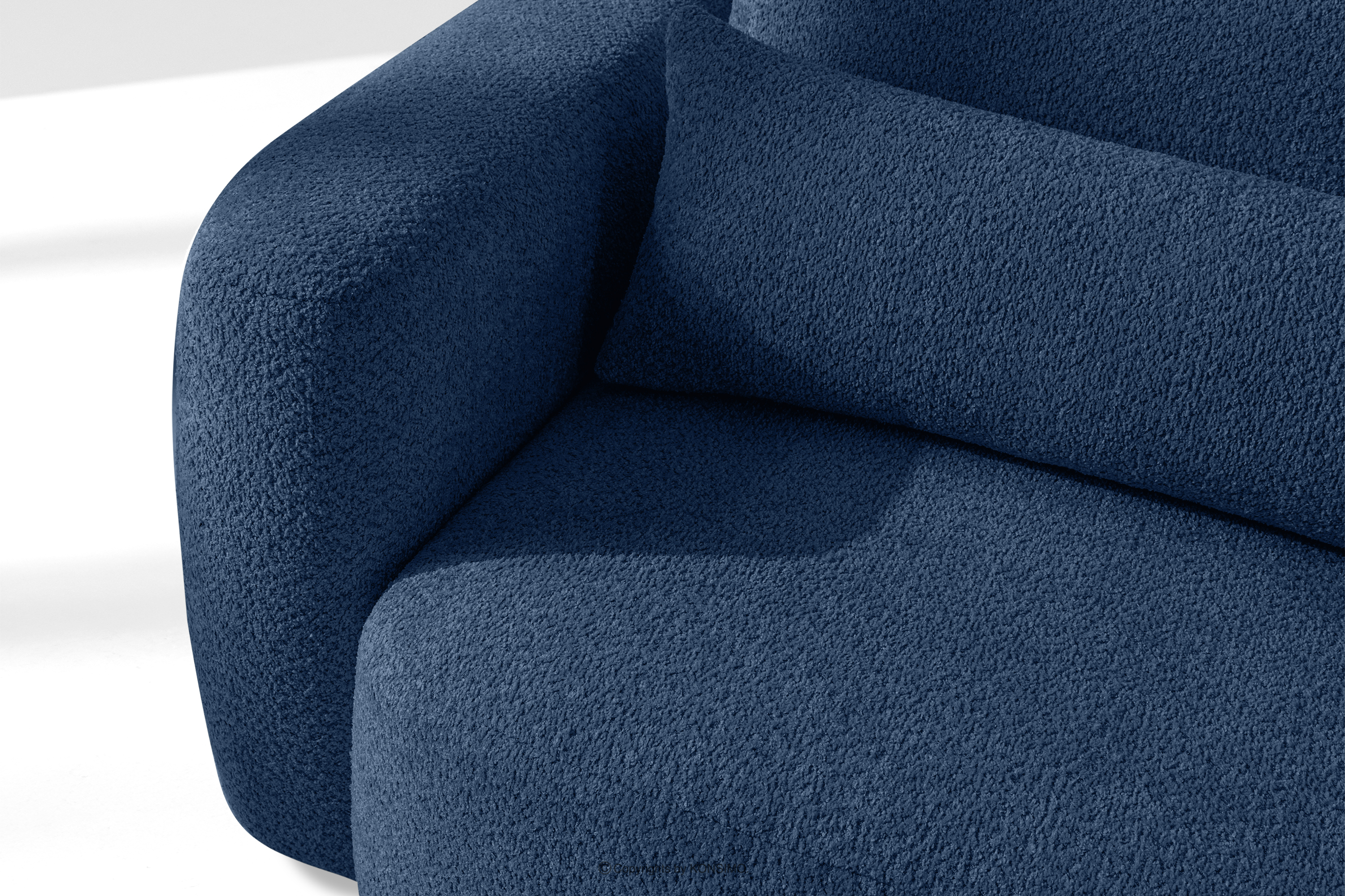 Pravá rohová pohovka a kreslo v japonskom štýle tmavomodrá bouclé látka prináša revolúciu v poňatí relaxácie. Jeho srdcom je inovatívne sedadlo, ktorého jedinečný vypuklý tvar polmesiaca je nielen pútavý, ale predovšetkým poskytuje bezkonkurenčné pohodlie. Vďaka použitiu vlnitých pružín typu B a vysokokvalitnej peny HR30 je sedadlo stredne tvrdé a zároveň mimoriadne pružné a mäkké.
