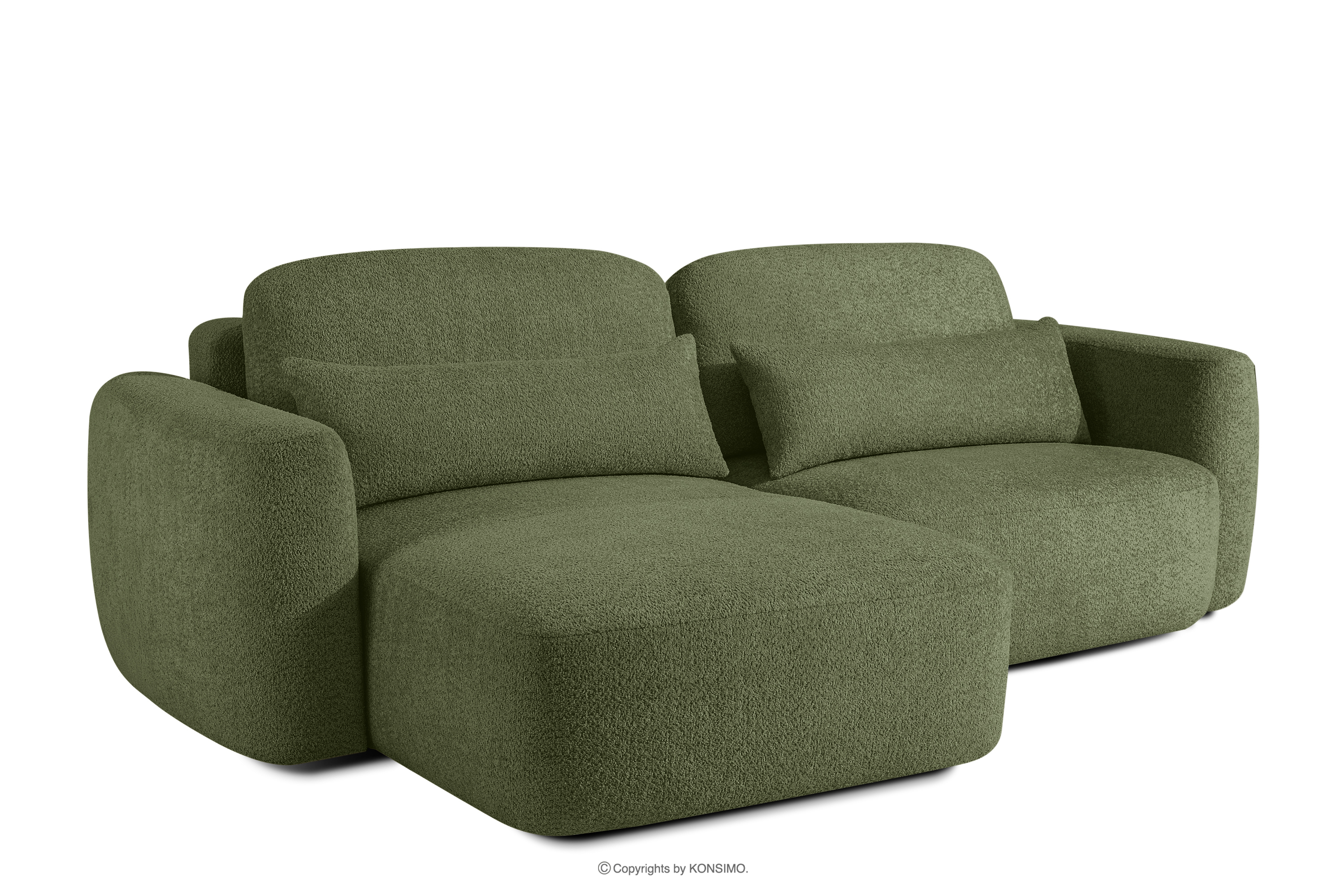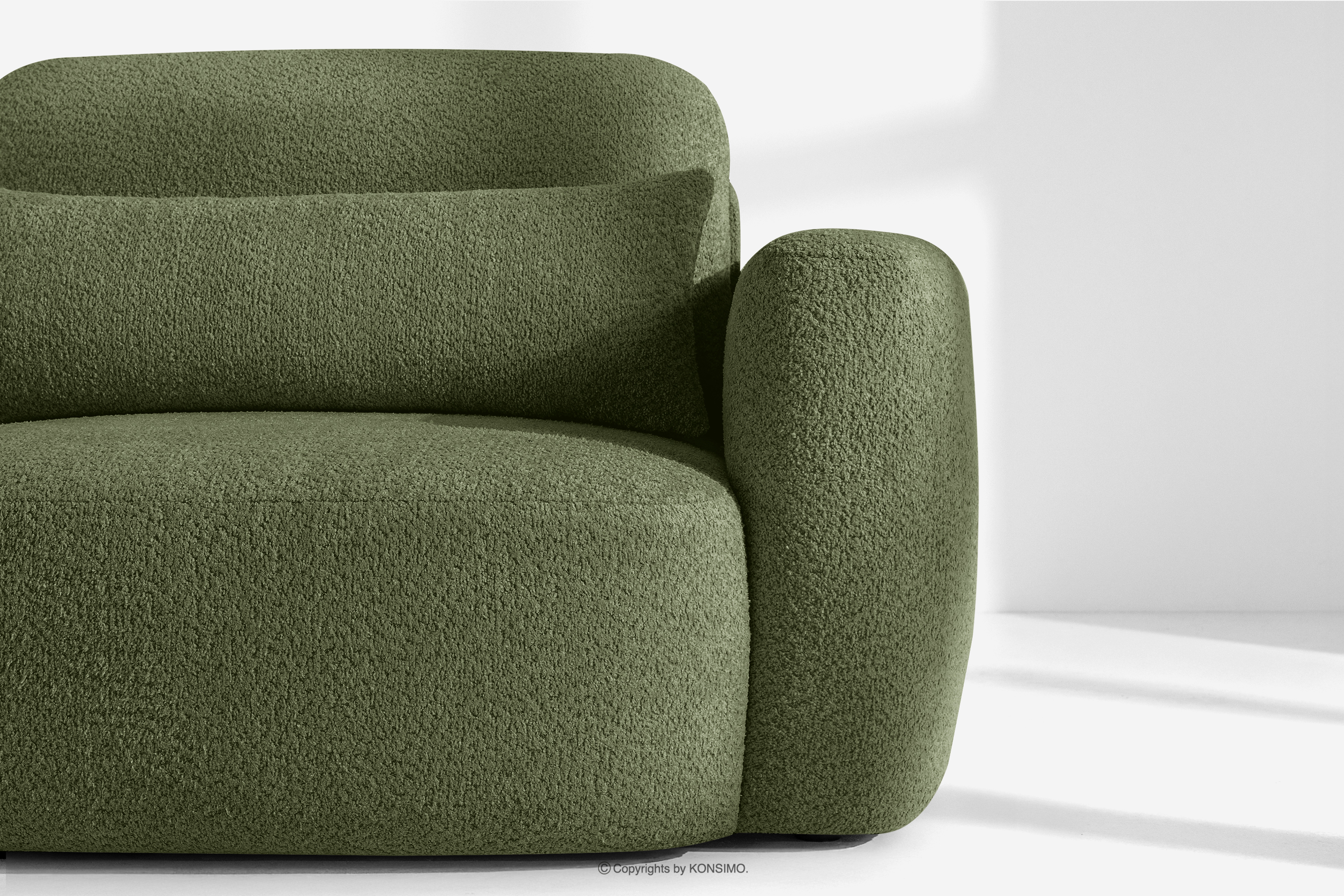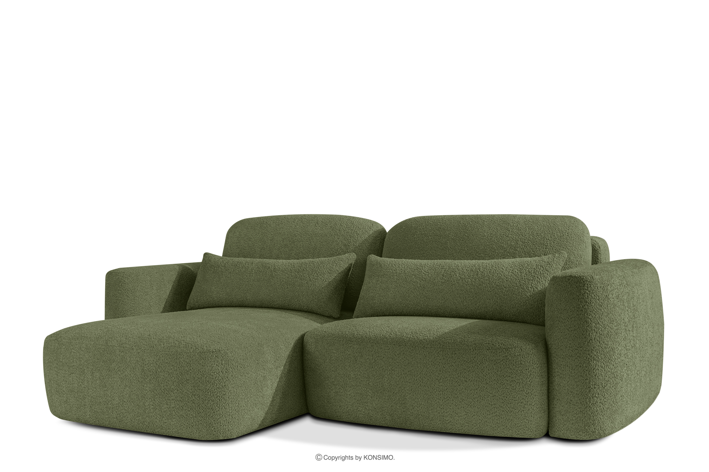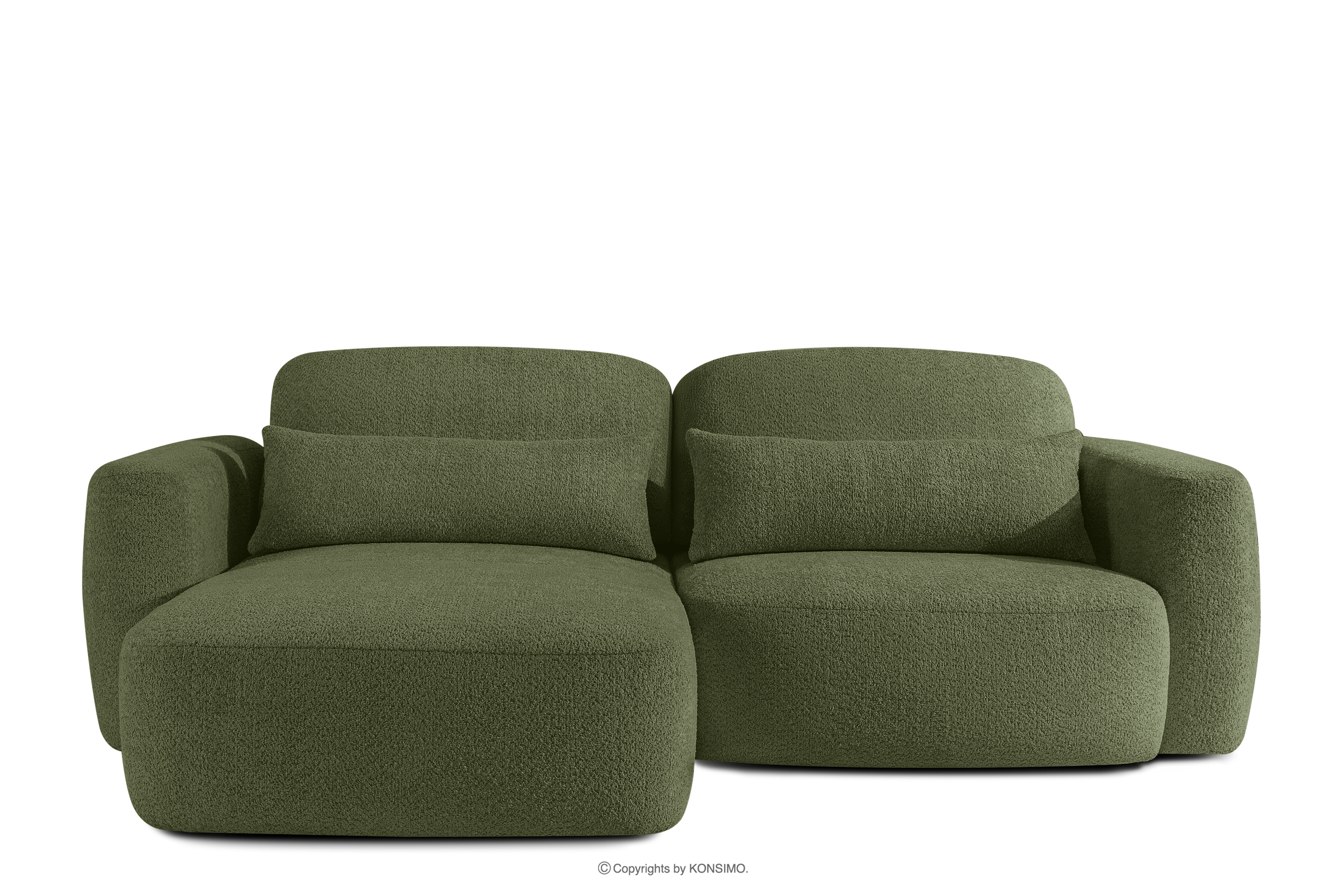Ľavá rohová pohovka a kreslo v japonskom štýle bouclé olivová ELOSA - farba olivová