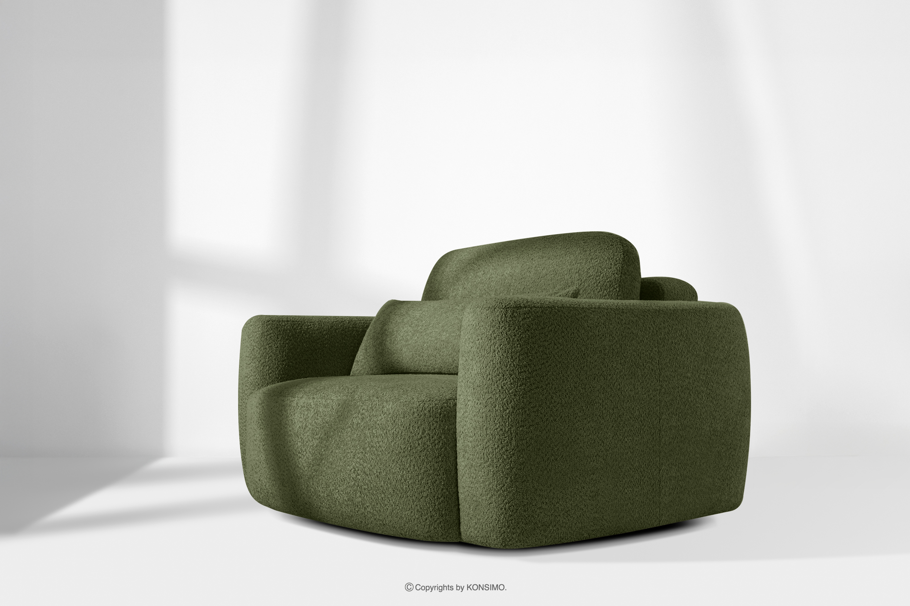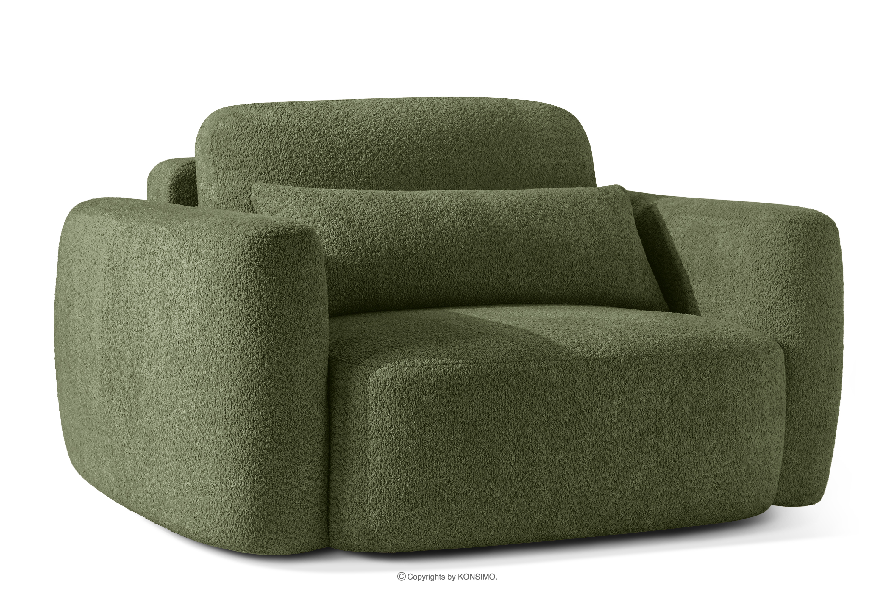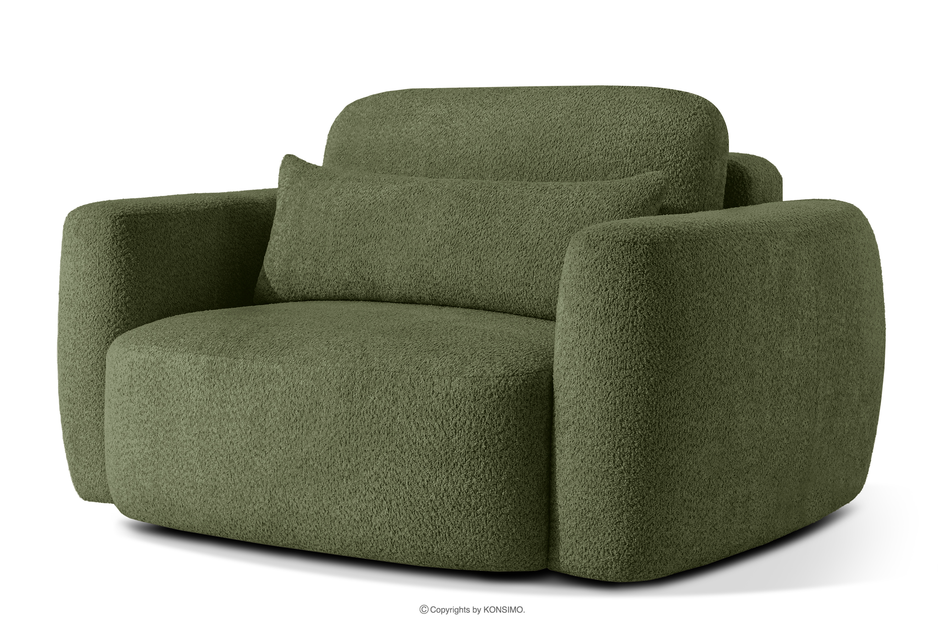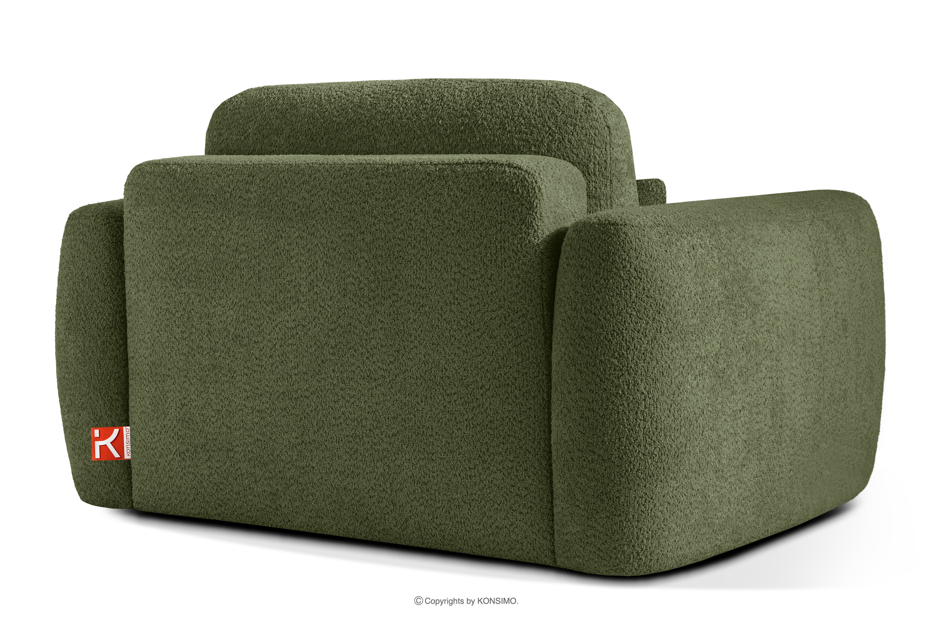 Ľavá rohová pohovka a kreslo v japonskom štýle bouclé olivová ELOSA - farba olivová