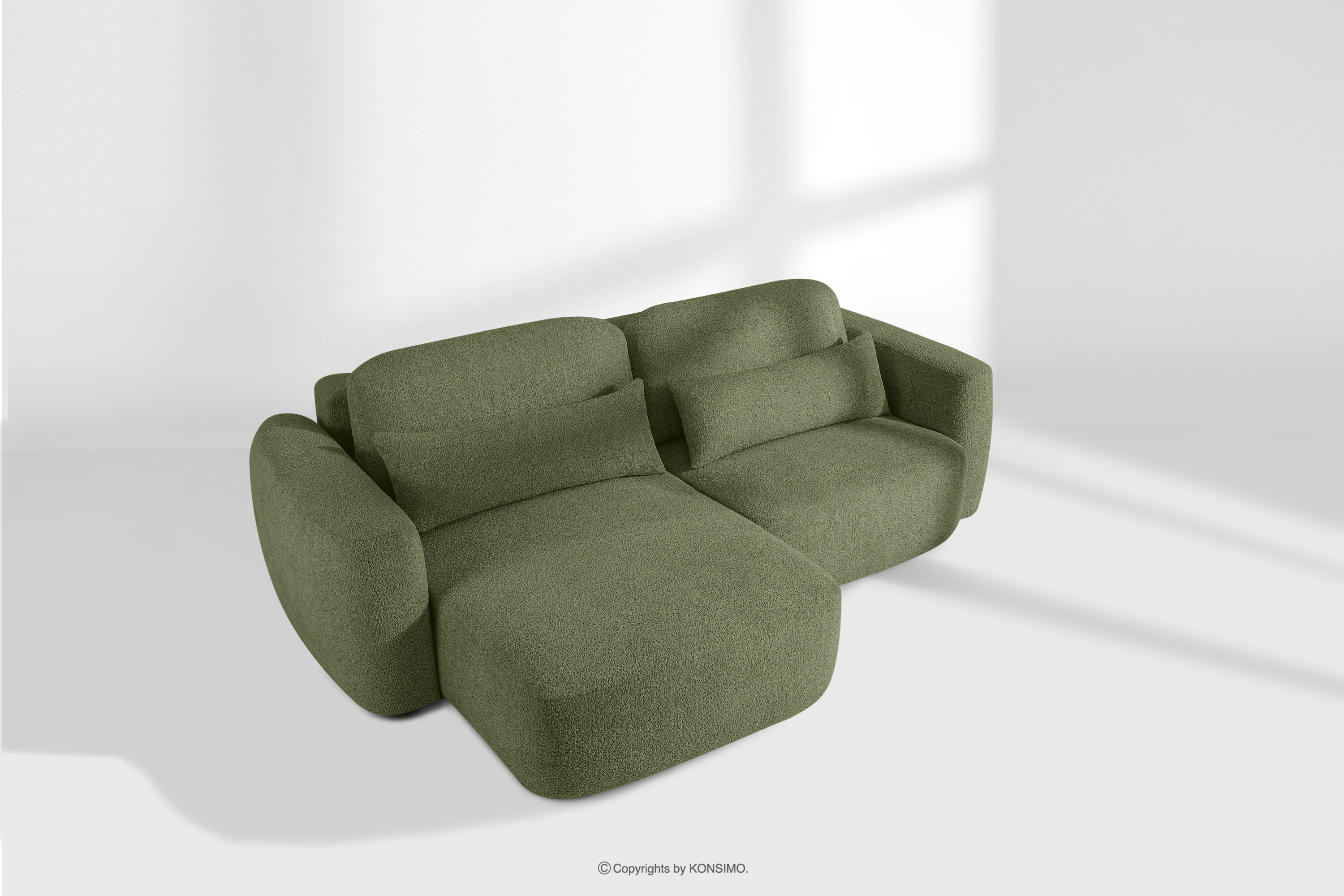 ELOSA Ľavá rohová pohovka a kreslo v japonskom štýle bouclé olivová