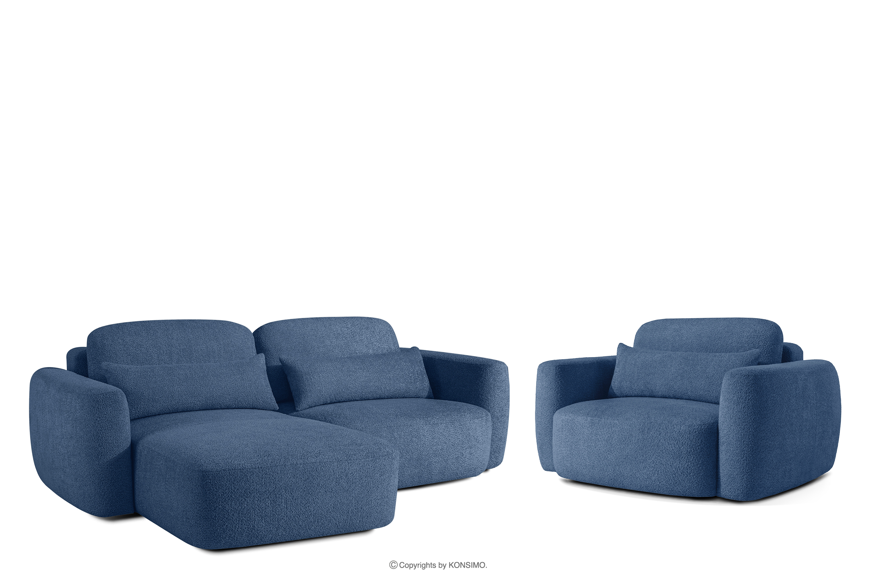 ELOSA Objav celú kolekciu Ľavá rohová pohovka a kreslo v japonskom štýle bouclé tmavomodrá- farba tmavě modrá