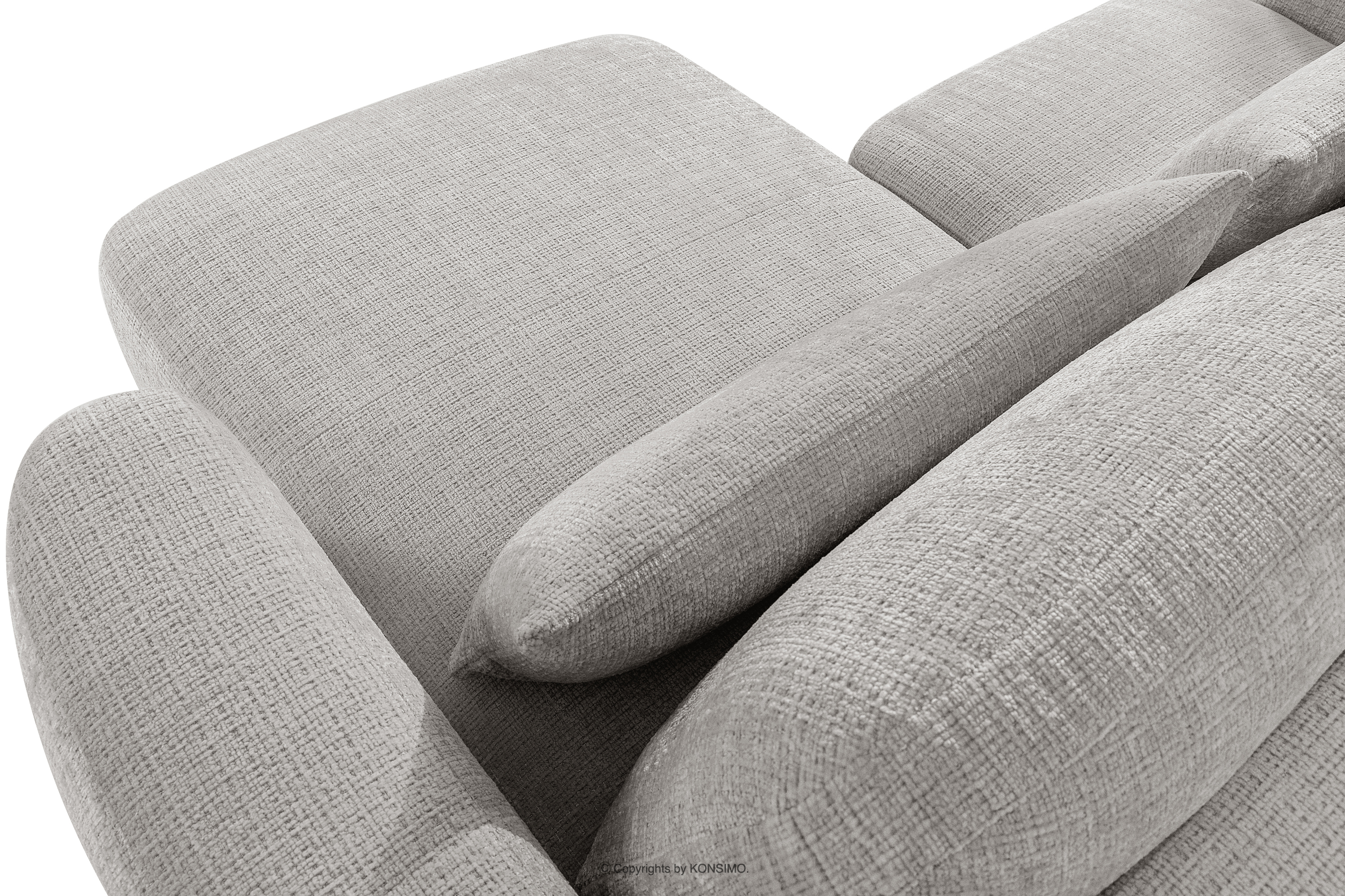Rohová pohovka Japandi zo svetlosivej šenilovej látky prináša revolúciu v poňatí relaxácie. Jeho srdcom je inovatívne sedadlo, ktorého jedinečný vypuklý tvar polmesiaca je nielen pútavý, ale predovšetkým poskytuje bezkonkurenčné pohodlie. Vďaka použitiu vlnitých pružín typu B a vysokokvalitnej peny HR30 je sedadlo stredne tvrdé a zároveň mimoriadne pružné a mäkké. Táto kombinácia zaručuje dokonalé prispôsobenie, minimalizuje tlakové body a zabezpečuje relaxáciu na najvyššej úrovni.