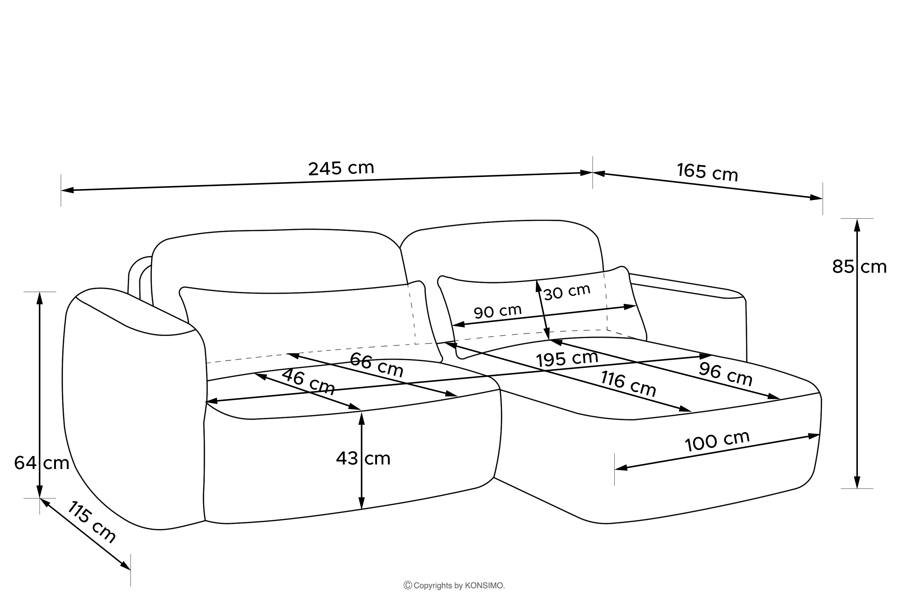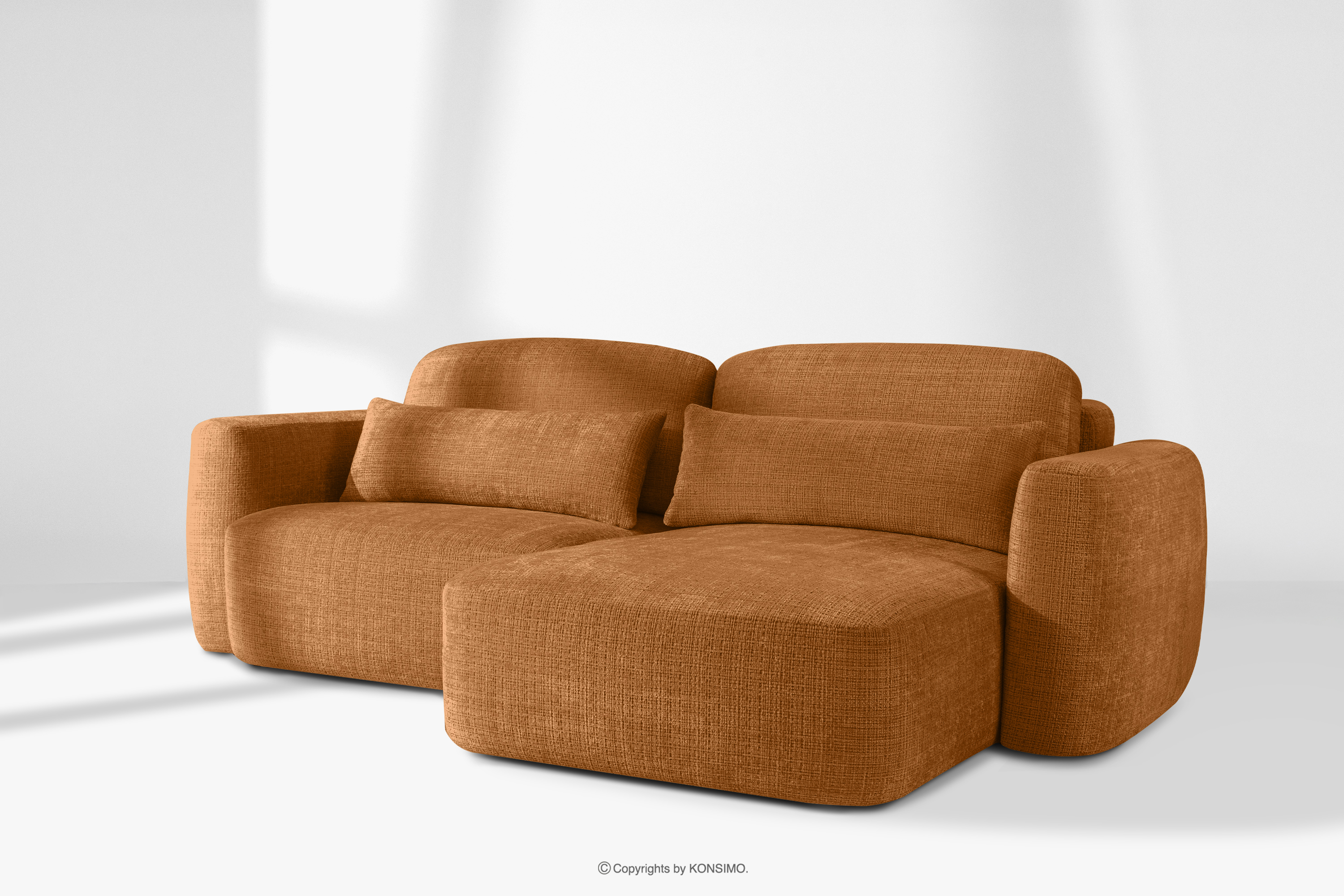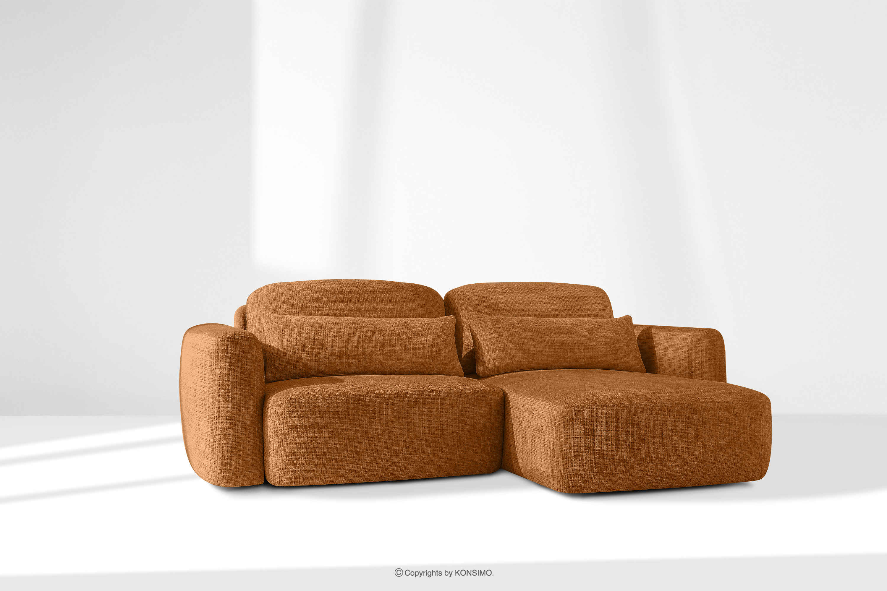 Rohová pohovka bola navrhnutá s ohľadom na maximálnu funkčnosť a estetiku, ktorú ocenia aj tí najnáročnejší. Jej podrúčky čalúnené hrubou tvarovanou penou sú mimoriadne mäkké a nabádajú k odpočinku. Opierkové vankúše sú vyplnené zmesou 70 % silikónových guličiek a 30 % penových granúl, čo zaručuje, že si dokonale zachovajú svoj tvar a zároveň sa prispôsobia telu. Dve Bedrové vankúše, 100 % vyplnené silikónovými guličkami, sú kľúčom k individuálnemu pohodliu. Ich vysoký a hrubý tvar účinne vytláča bedrovú oblasť a podopiera chrbát až po úroveň lopatiek. Vďaka dvojakému použitiu týchto vankúšov môžete upravovať hĺbku sedenia a ľahko meniť polohu zo sediacej do pololežiacej, čo je ideálne na čítanie alebo sledovanie filmov. Dôležité je, že dokonale prepracovaná forma nábytku, t. j. čalúnené operadlo a pevné prešitie, umožňuje rohovú pohovku voľne umiestniť k stene aj ako voľne stojaci prvok zostavy.