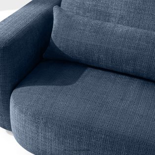 Rohová pohovka v japonskom štýle z tmavomodrej šenilovej látky prináša revolúciu v poňatí relaxácie. Jeho srdcom je inovatívne sedadlo, ktorého jedinečný vypuklý tvar polmesiaca je nielen pútavý, ale predovšetkým poskytuje bezkonkurenčné pohodlie. Vďaka použitiu vlnitých pružín typu B a vysokokvalitnej peny HR30 je sedadlo stredne tvrdé a zároveň mimoriadne pružné a mäkké.
