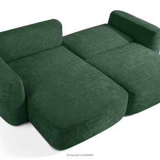Rohová pohovka v japonskom štýle zo zelenej ženilovej tkaniny prináša revolúciu v poňatí relaxácie. Jeho srdcom je inovatívne sedadlo, ktorého jedinečný vypuklý tvar polmesiaca je nielen pútavý, ale predovšetkým poskytuje bezkonkurenčné pohodlie. Vďaka použitiu vlnitých pružín typu B a vysokokvalitnej peny HR30 je sedadlo stredne tvrdé a zároveň mimoriadne pružné a mäkké.