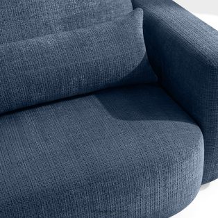 Rohová pohovka v japonskom štýle z tmavomodrej ženilovej tkaniny prináša revolúciu v poňatí relaxácie. Jeho srdcom je inovatívne sedadlo, ktorého jedinečný vypuklý tvar polmesiaca je nielen pútavý, ale predovšetkým poskytuje bezkonkurenčné pohodlie. Vďaka použitiu vlnitých pružín typu B a vysokokvalitnej peny HR30 je sedadlo stredne tvrdé a zároveň mimoriadne pružné a mäkké.