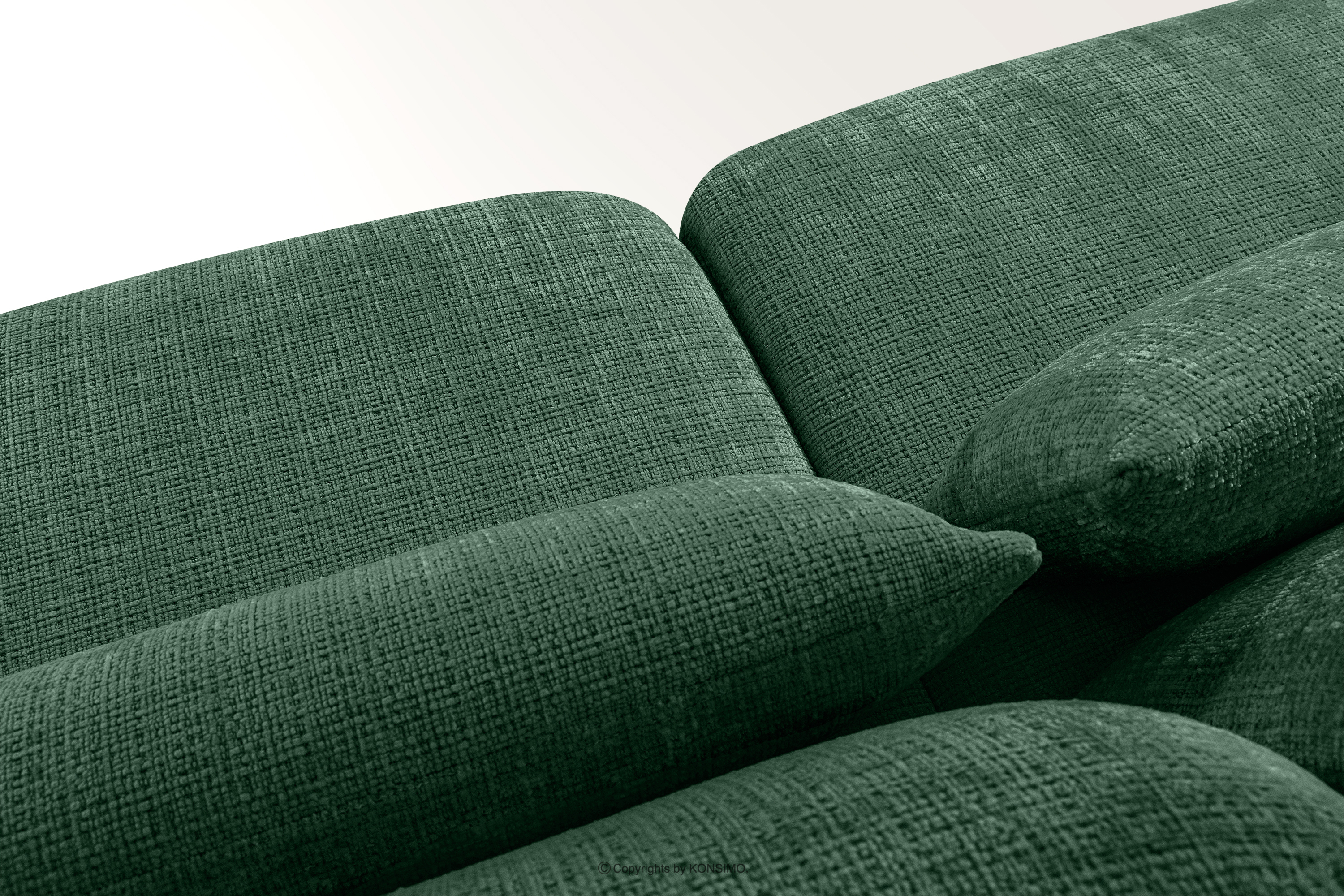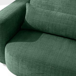 Nábytok bol navrhnutý s ohľadom na maximálnu funkčnosť a estetiku, ktorú ocenia aj tí najnáročnejší. Jeho podrúčky čalúnené hrubou tvarovanou penou sú mimoriadne mäkké a nabádajú k odpočinku. Opierkové vankúše sú vyplnené zmesou 70 % silikónových guličiek a 30 % penových granúl, vďaka čomu si dokonale zachovávajú svoj tvar a zároveň sa prispôsobujú telu. Dva bedrové vankúše, 100 % vyplnené silikónovými guličkami, sú kľúčom k individuálnemu pohodliu. Ich vysoký a hrubý tvar účinne vytláča bedrovú časť a podopiera chrbát až po úroveň lopatiek. Vďaka dvojakému použitiu týchto vankúšov môžete upravovať hĺbku sedenia a ľahko meniť sedenie na pololežiace, čo je ideálne na čítanie alebo sledovanie filmov. Dôležité je, že dokonale prepracovaná forma nábytku, t. j. čalúnené operadlo a pevné prešitie, umožňuje voľné umiestnenie nábytku k stene aj ako voľne stojaceho prvku zostavy.