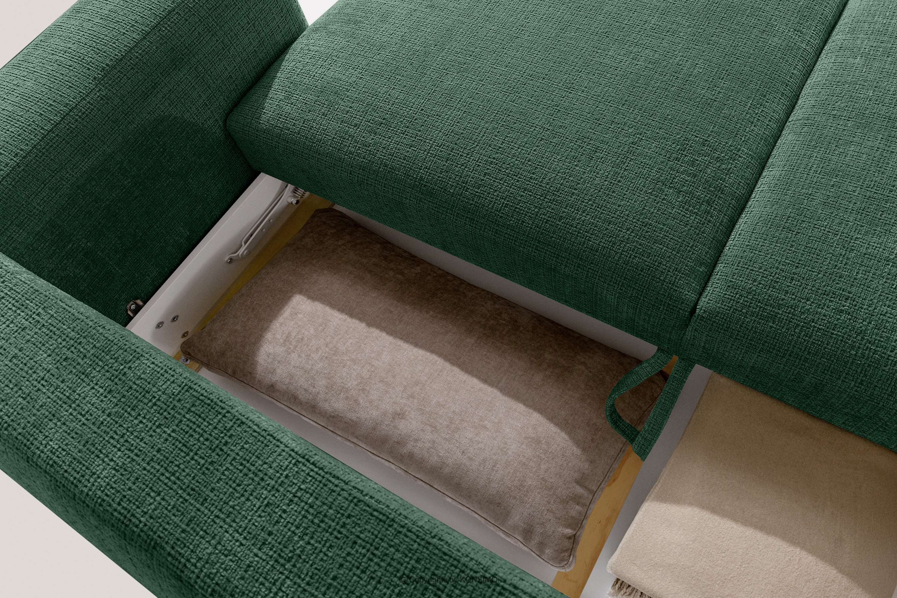 Navyše, každý kus peny je precízne ručne tvarovaný a rezaný - ide o technológiu náročnú na prácu s dôrazom na detail, ktorá nielenže podčiarkuje jedinečnosť každého kusu nábytku, ale zároveň zaručuje, že jeho dokonalý tvar bude zachovaný dlhé roky. Zabudnite na deformáciu - tento kus nábytku je investíciou do trvalého pohodlia a estetiky. Veľkorysá hĺbka sedadla sa premieta do pôsobivej plochy na spanie, takže je ideálna pre nečakaných hostí alebo ako ďalšie miesto na odpočinok v noci. Dôležité je, že vankúše boli navrhnuté tak, aby sa dali používať vo verzii na ležanie aj na spanie, čo zaručuje pohodlný spánok.