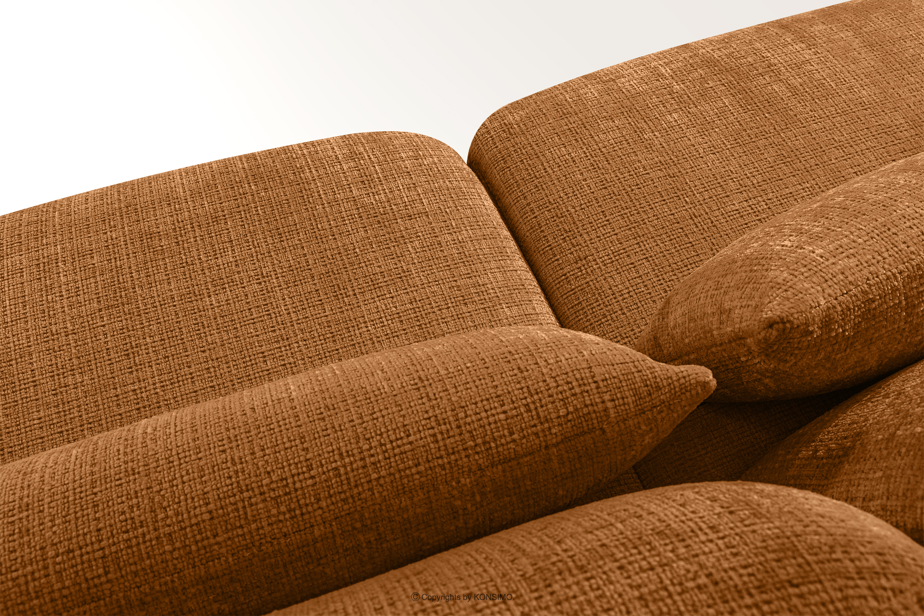 Navyše, každý kus peny je precízne ručne tvarovaný a rezaný - ide o technológiu náročnú na prácu s dôrazom na detail, ktorá nielenže podčiarkuje jedinečnosť každého kusu nábytku, ale zároveň zaručuje, že jeho dokonalý tvar bude zachovaný dlhé roky. Zabudnite na deformáciu - tento kus nábytku je investíciou do trvalého pohodlia a estetiky. Veľkorysá hĺbka sedadla sa premieta do pôsobivej plochy na spanie, takže je ideálna pre nečakaných hostí alebo ako ďalšie miesto na odpočinok v noci. Dôležité je, že vankúše boli navrhnuté tak, aby sa dali používať vo verzii na ležanie aj na spanie, čo zaručuje pohodlný spánok.