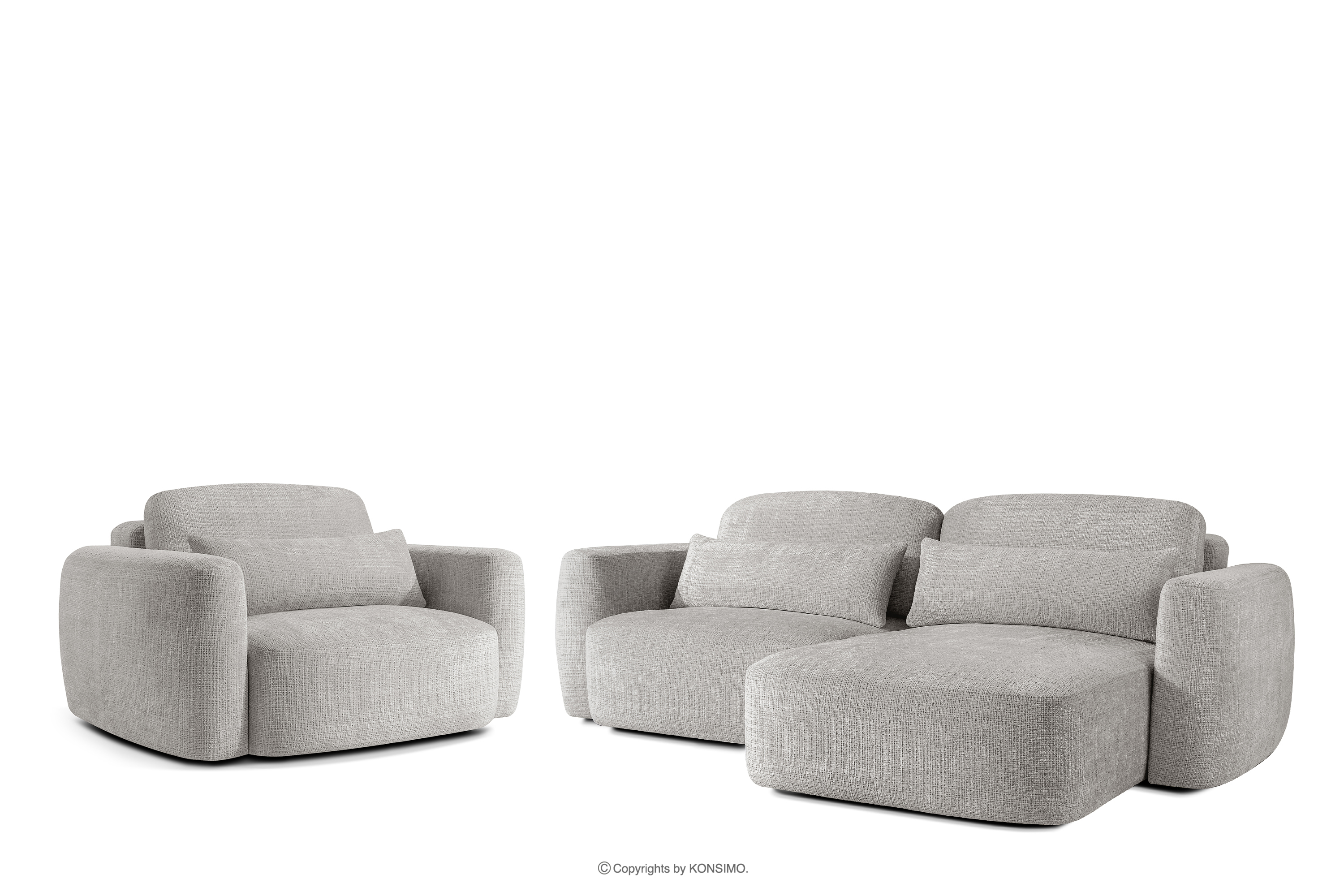 produktu Pravá rohová pohovka a kreslo v štýle Japandi svetlošedá ženilka