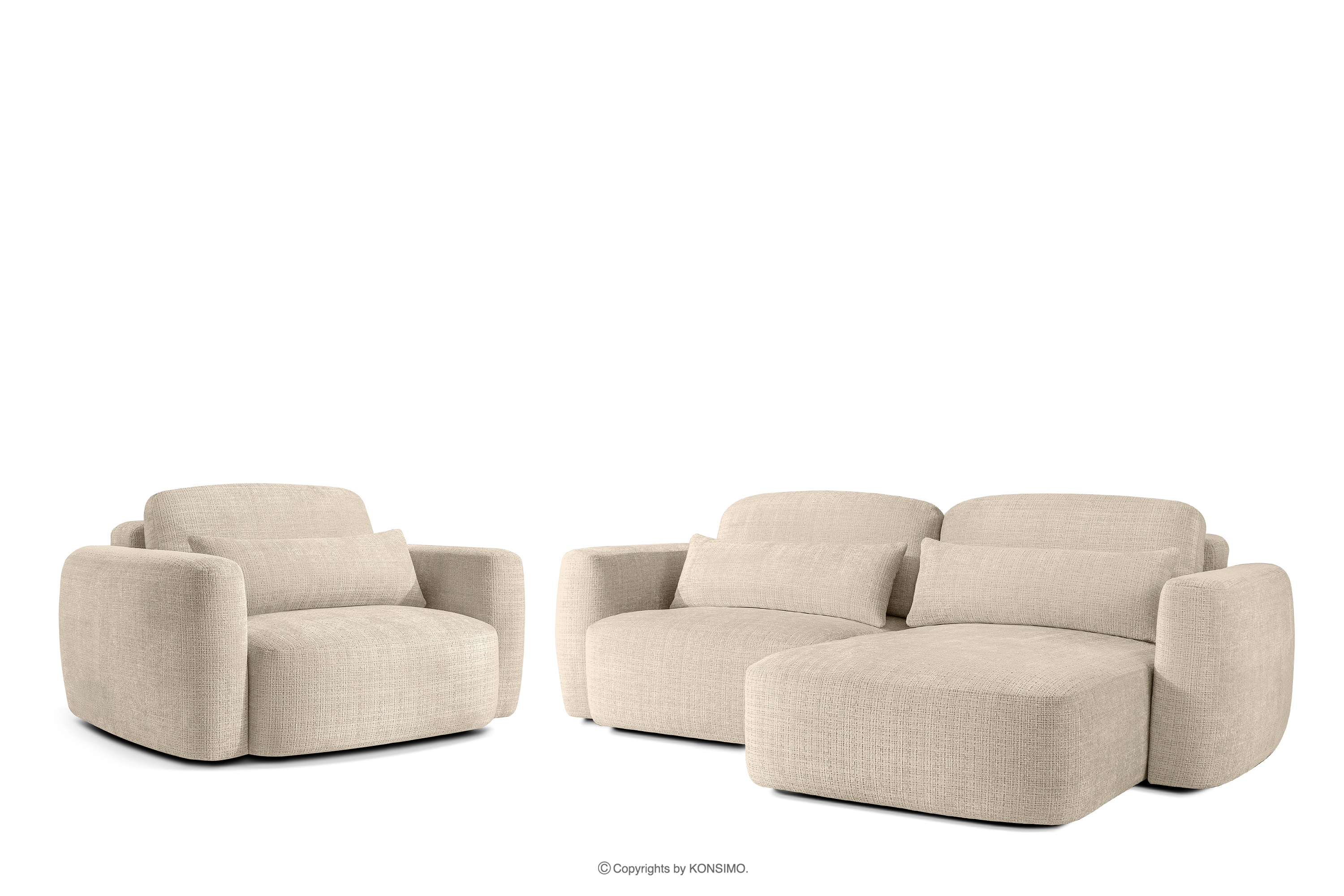 ELOSA Objav celú kolekciu Pravá rohová pohovka a kreslo v štýle Japandi krémová ženilka- farba krémová