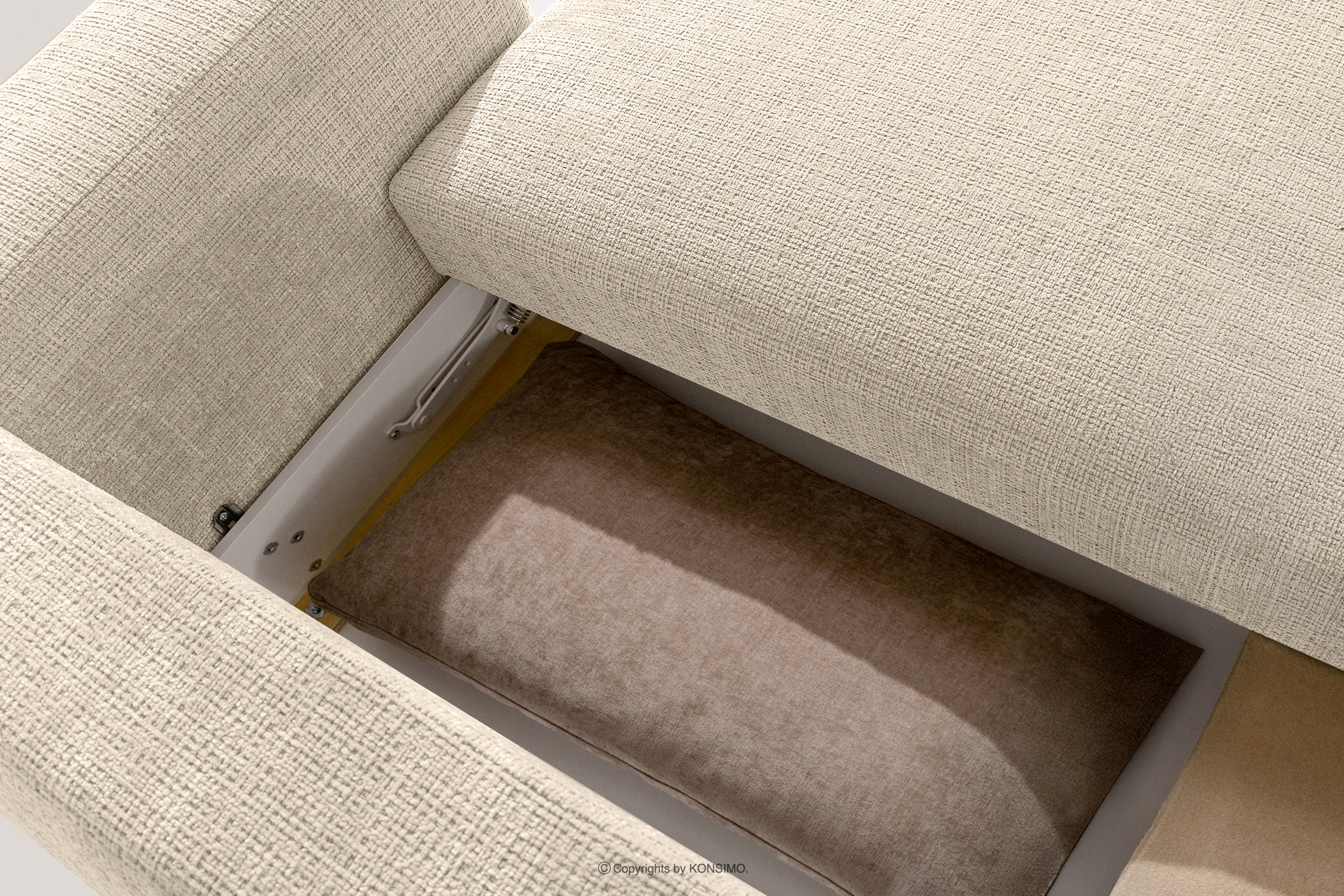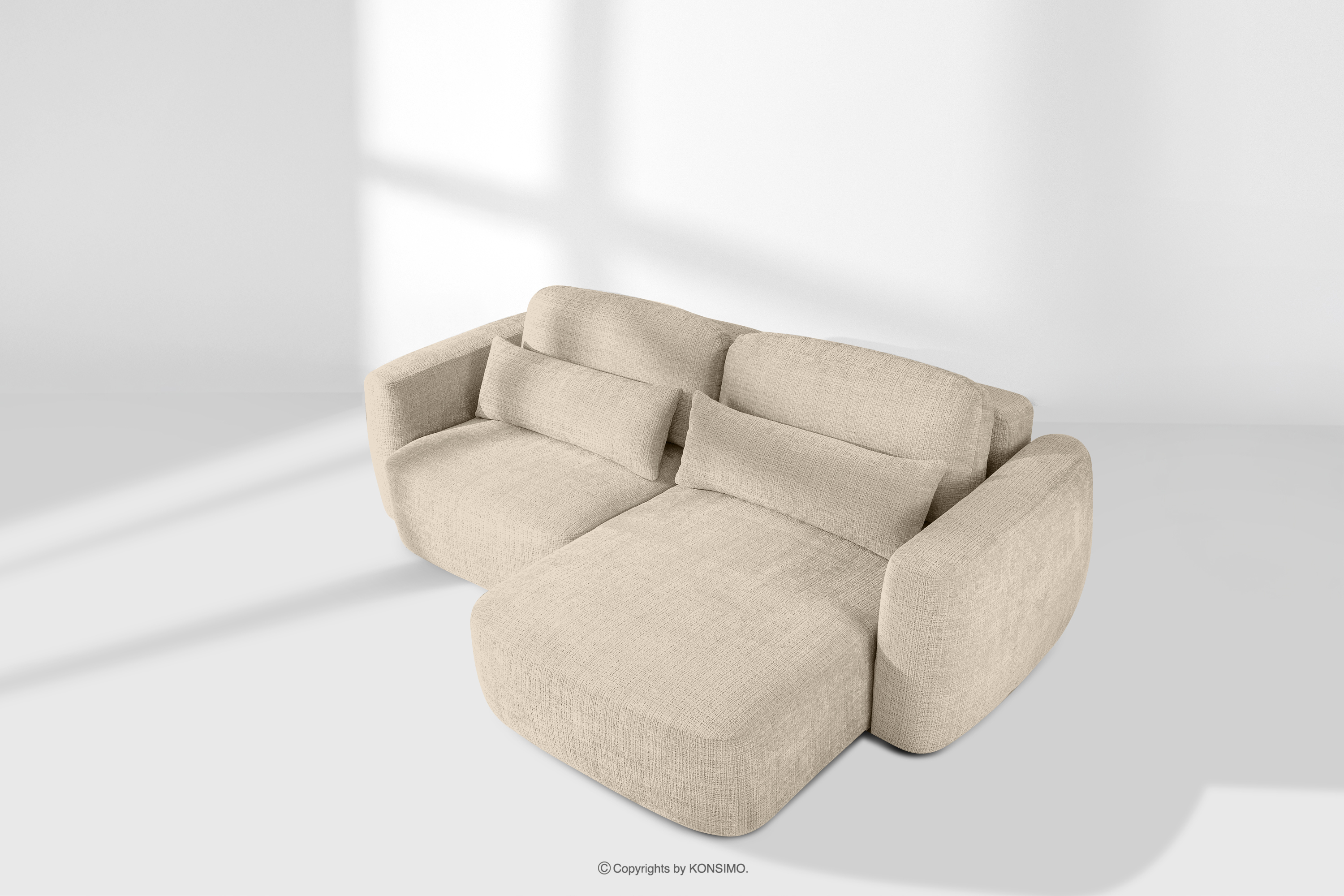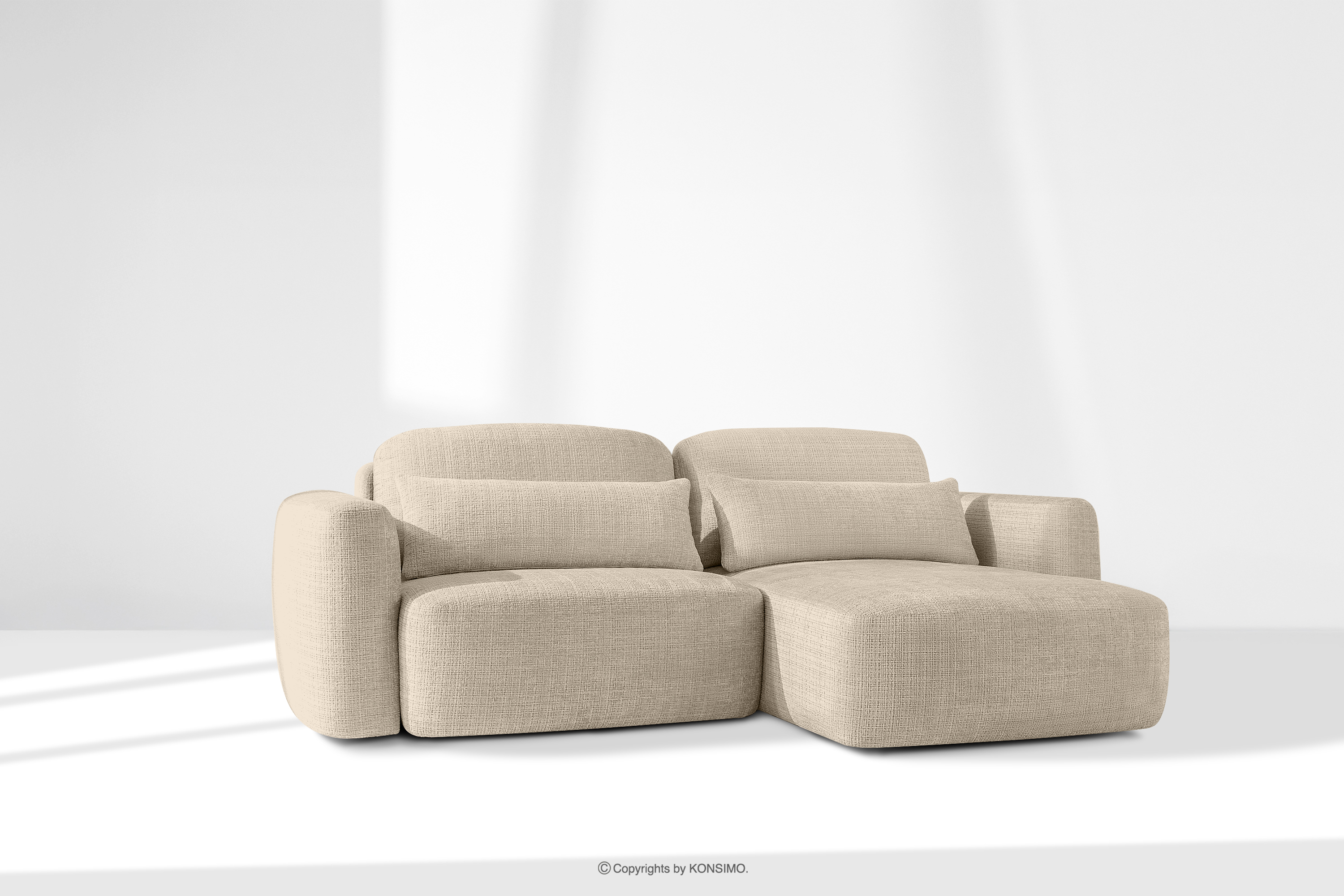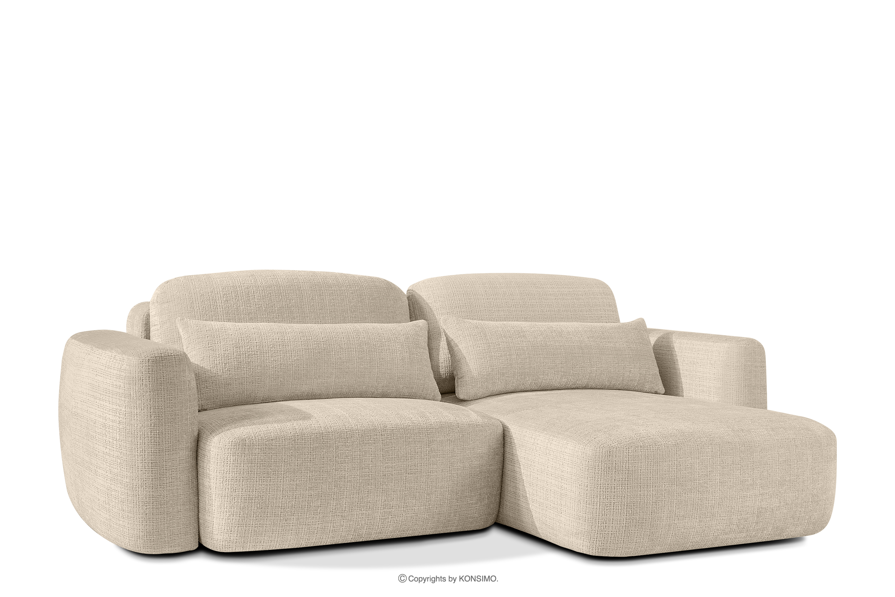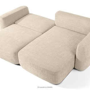 Pravá rohová pohovka a kreslo v štýle Japandi krémová ženilka prináša revolúciu v poňatí relaxácie. Jeho srdcom je inovatívne sedadlo, ktorého jedinečný vypuklý tvar polmesiaca je nielen pútavý, ale predovšetkým poskytuje bezkonkurenčné pohodlie. Vďaka použitiu vlnitých pružín typu B a vysokokvalitnej peny HR30 je sedadlo stredne tvrdé a zároveň mimoriadne pružné a mäkké.
