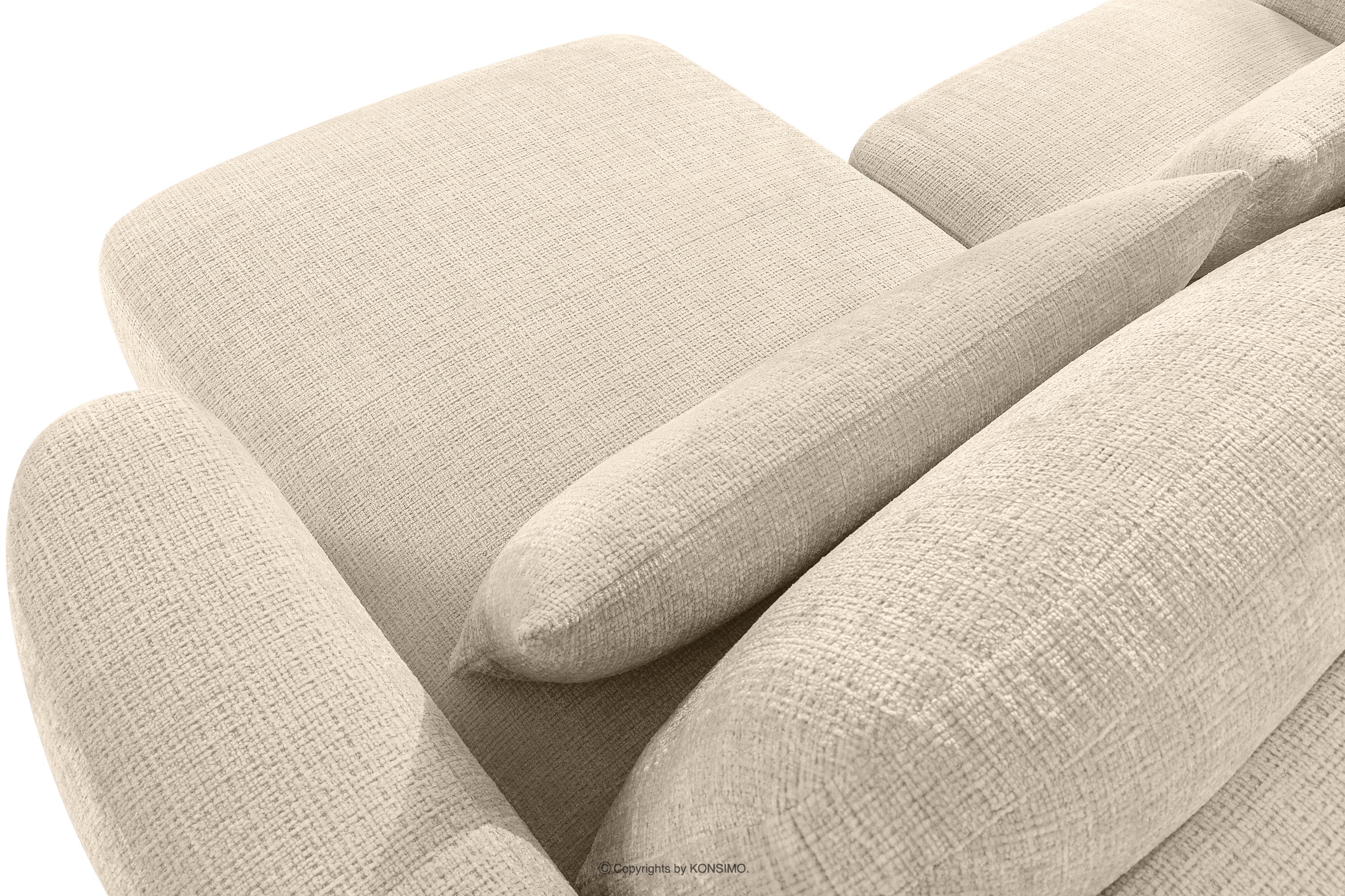 Nábytok bol navrhnutý s ohľadom na maximálnu funkčnosť a estetiku, ktorú ocenia aj tí najnáročnejší. Jeho podrúčky čalúnené hrubou tvarovanou penou sú mimoriadne mäkké a nabádajú k odpočinku. Opierkové vankúše sú vyplnené zmesou 70 % silikónových guličiek a 30 % penových granúl, vďaka čomu si dokonale zachovávajú svoj tvar a zároveň sa prispôsobujú telu. Dva bedrové vankúše, 100 % vyplnené silikónovými guličkami, sú kľúčom k individuálnemu pohodliu. Ich vysoký a hrubý tvar účinne vytláča bedrovú časť a podopiera chrbát až po úroveň lopatiek. Vďaka dvojakému použitiu týchto vankúšov môžete upravovať hĺbku sedenia a ľahko meniť sedenie na pololežiace, čo je ideálne na čítanie alebo sledovanie filmov. Dôležité je, že dokonale prepracovaná forma nábytku, t. j. čalúnené operadlo a pevné prešitie, umožňuje voľné umiestnenie nábytku k stene aj ako voľne stojaceho prvku zostavy.