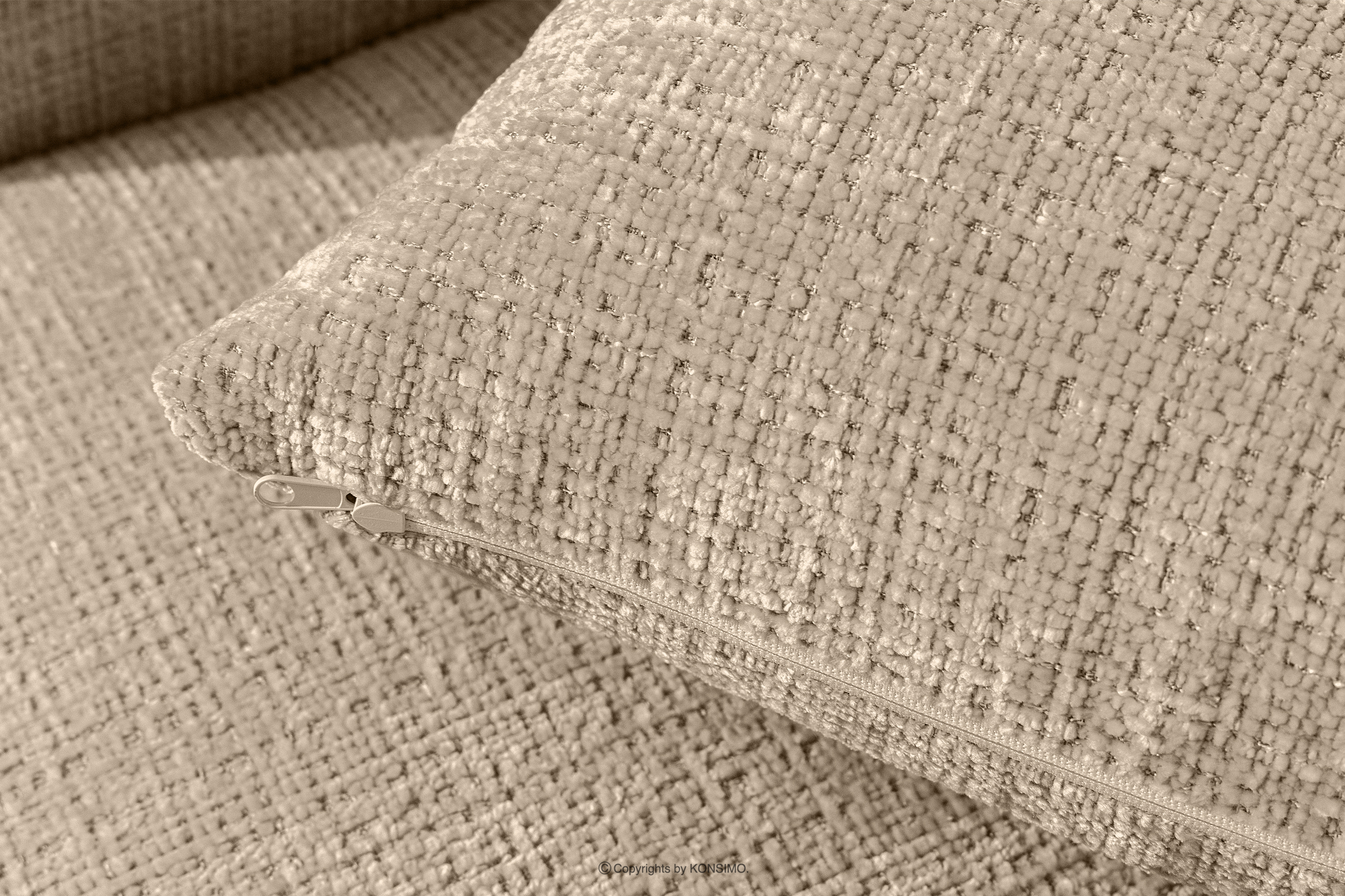Pravá rohová pohovka a kreslo v štýle Japandi béžová ženilka prináša revolúciu v poňatí relaxácie. Jeho srdcom je inovatívne sedadlo, ktorého jedinečný vypuklý tvar polmesiaca je nielen pútavý, ale predovšetkým poskytuje bezkonkurenčné pohodlie. Vďaka použitiu vlnitých pružín typu B a vysokokvalitnej peny HR30 je sedadlo stredne tvrdé a zároveň mimoriadne pružné a mäkké.