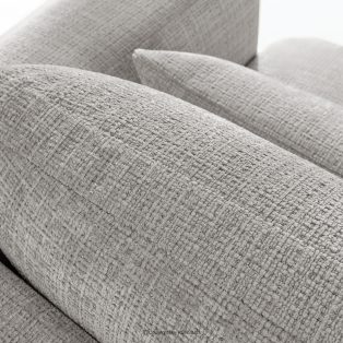 Nábytok bol navrhnutý s ohľadom na maximálnu funkčnosť a estetiku, ktorú ocenia aj tí najnáročnejší. Jeho podrúčky čalúnené hrubou tvarovanou penou sú mimoriadne mäkké a nabádajú k odpočinku. Opierkové vankúše sú vyplnené zmesou 70 % silikónových guličiek a 30 % penových granúl, vďaka čomu si dokonale zachovávajú svoj tvar a zároveň sa prispôsobujú telu. Dva bedrové vankúše, 100 % vyplnené silikónovými guličkami, sú kľúčom k individuálnemu pohodliu. Ich vysoký a hrubý tvar účinne vytláča bedrovú časť a podopiera chrbát až po úroveň lopatiek. Vďaka dvojakému použitiu týchto vankúšov môžete upravovať hĺbku sedenia a ľahko meniť sedenie na pololežiace, čo je ideálne na čítanie alebo sledovanie filmov. Dôležité je, že dokonale prepracovaná forma nábytku, t. j. čalúnené operadlo a pevné prešitie, umožňuje voľné umiestnenie nábytku k stene aj ako voľne stojaceho prvku zostavy.