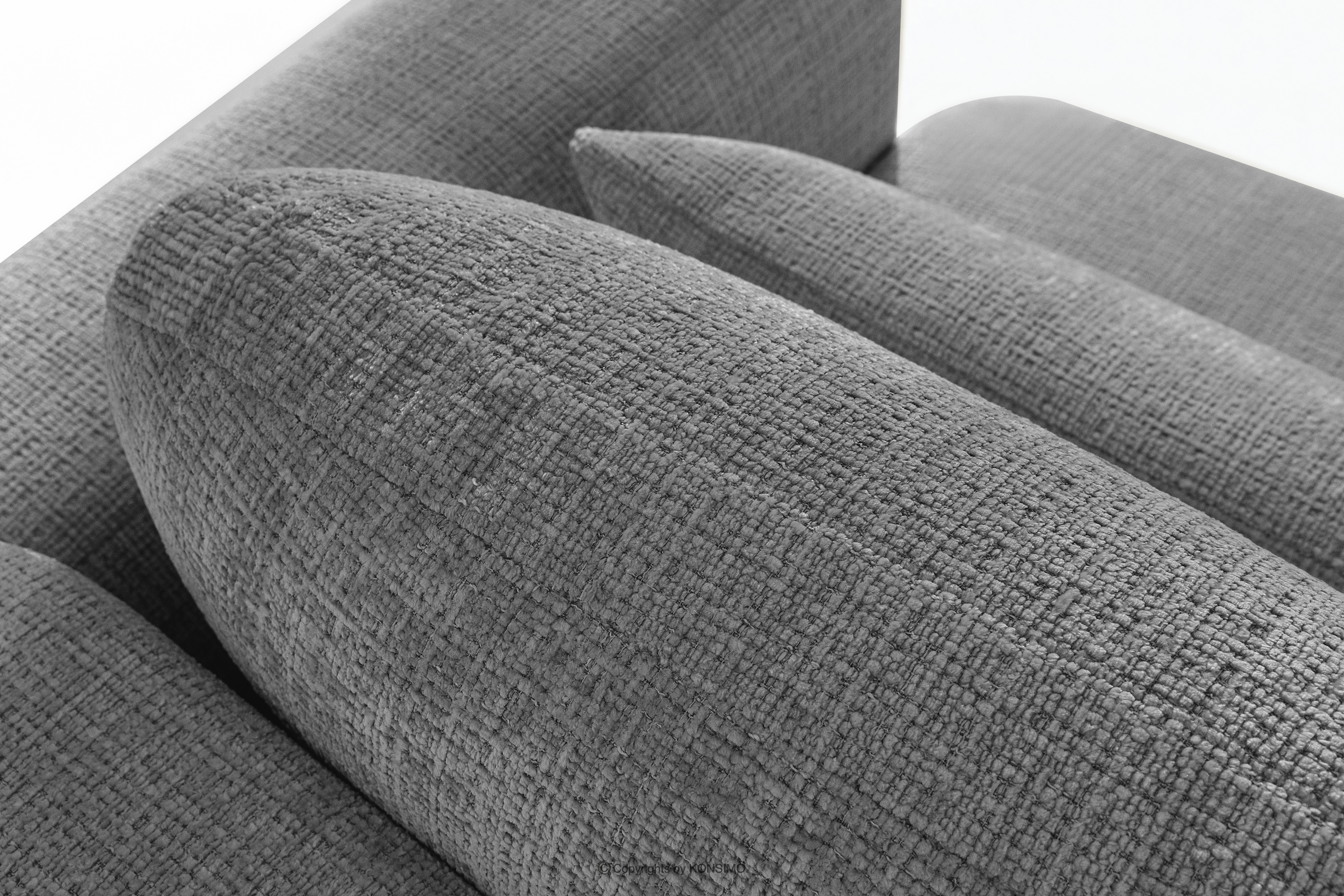 Ľavá rohová pohovka a kreslo v štýle Japandi tmavošedá ženilka prináša revolúciu v poňatí relaxácie. Jeho srdcom je inovatívne sedadlo, ktorého jedinečný vypuklý tvar polmesiaca je nielen pútavý, ale predovšetkým poskytuje bezkonkurenčné pohodlie. Vďaka použitiu vlnitých pružín typu B a vysokokvalitnej peny HR30 je sedadlo stredne tvrdé a zároveň mimoriadne pružné a mäkké.