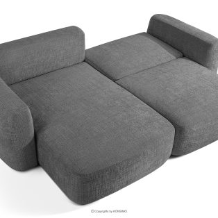 Ľavá rohová pohovka a kreslo v štýle Japandi tmavošedá ženilka prináša revolúciu v poňatí relaxácie. Jeho srdcom je inovatívne sedadlo, ktorého jedinečný vypuklý tvar polmesiaca je nielen pútavý, ale predovšetkým poskytuje bezkonkurenčné pohodlie. Vďaka použitiu vlnitých pružín typu B a vysokokvalitnej peny HR30 je sedadlo stredne tvrdé a zároveň mimoriadne pružné a mäkké.