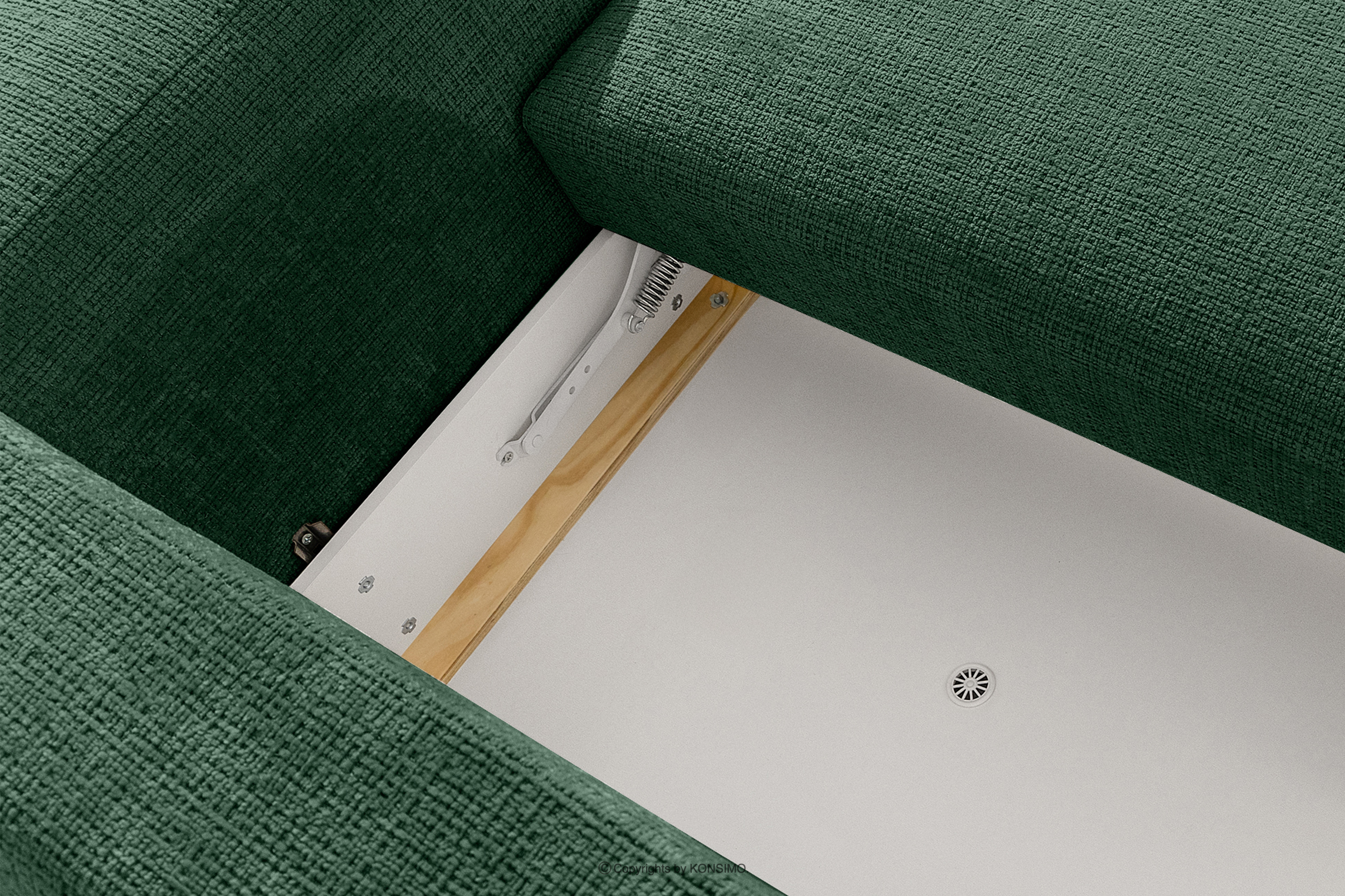 Ľavá rohová sedačka a kreslo v japonskom štýle zelená ženilka prináša revolúciu v poňatí relaxácie. Jeho srdcom je inovatívne sedadlo, ktorého jedinečný vypuklý tvar polmesiaca je nielen pútavý, ale predovšetkým poskytuje bezkonkurenčné pohodlie. Vďaka použitiu vlnitých pružín typu B a vysokokvalitnej peny HR30 je sedadlo stredne tvrdé a zároveň mimoriadne pružné a mäkké.