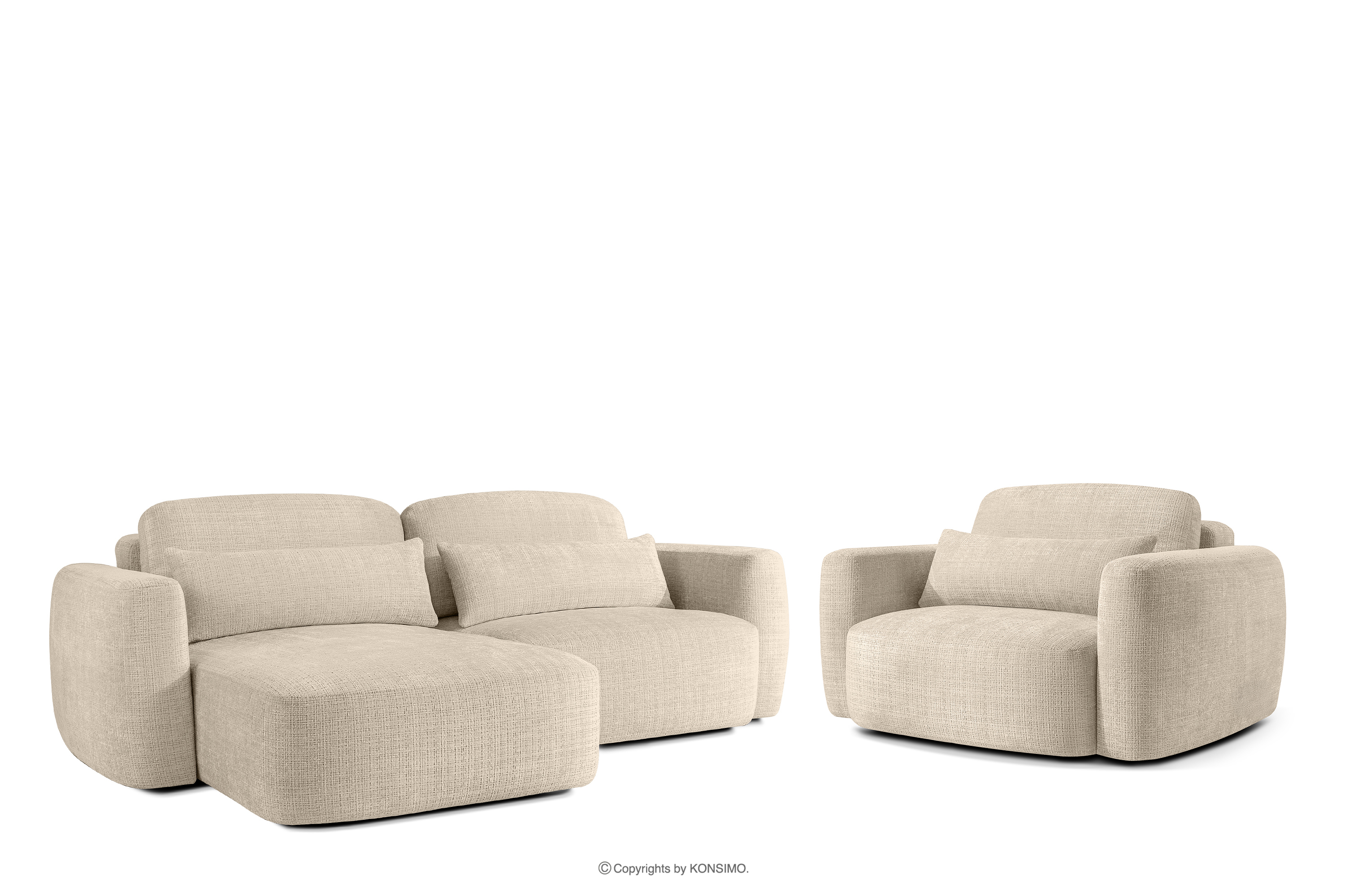Ľavá rohová pohovka a kreslo v štýle Japandi krémová ženilka ELOSA - farba krémová