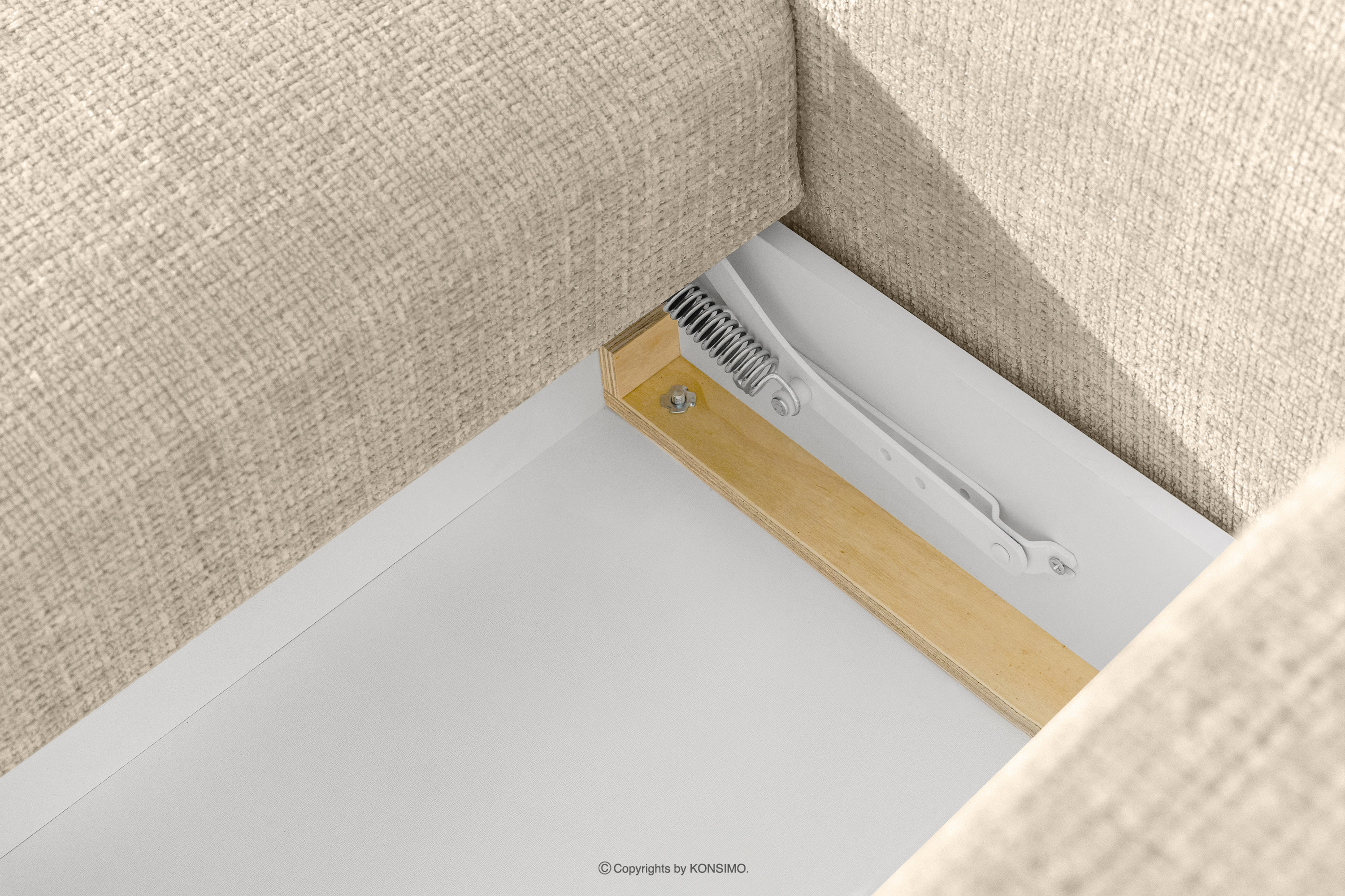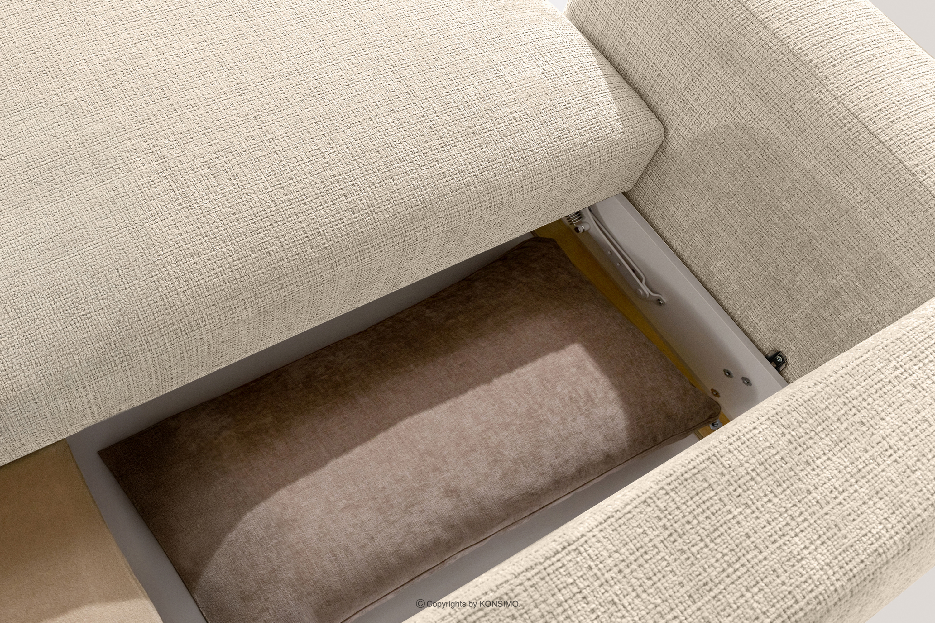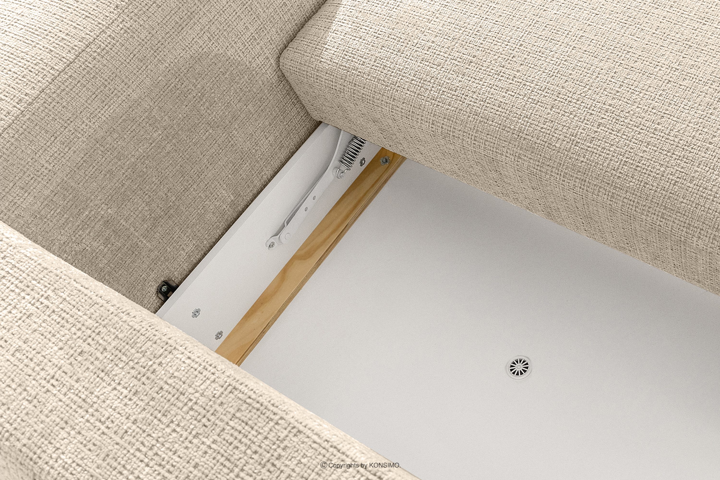 Ľavá rohová pohovka a kreslo v štýle Japandi krémová ženilka prináša revolúciu v poňatí relaxácie. Jeho srdcom je inovatívne sedadlo, ktorého jedinečný vypuklý tvar polmesiaca je nielen pútavý, ale predovšetkým poskytuje bezkonkurenčné pohodlie. Vďaka použitiu vlnitých pružín typu B a vysokokvalitnej peny HR30 je sedadlo stredne tvrdé a zároveň mimoriadne pružné a mäkké.