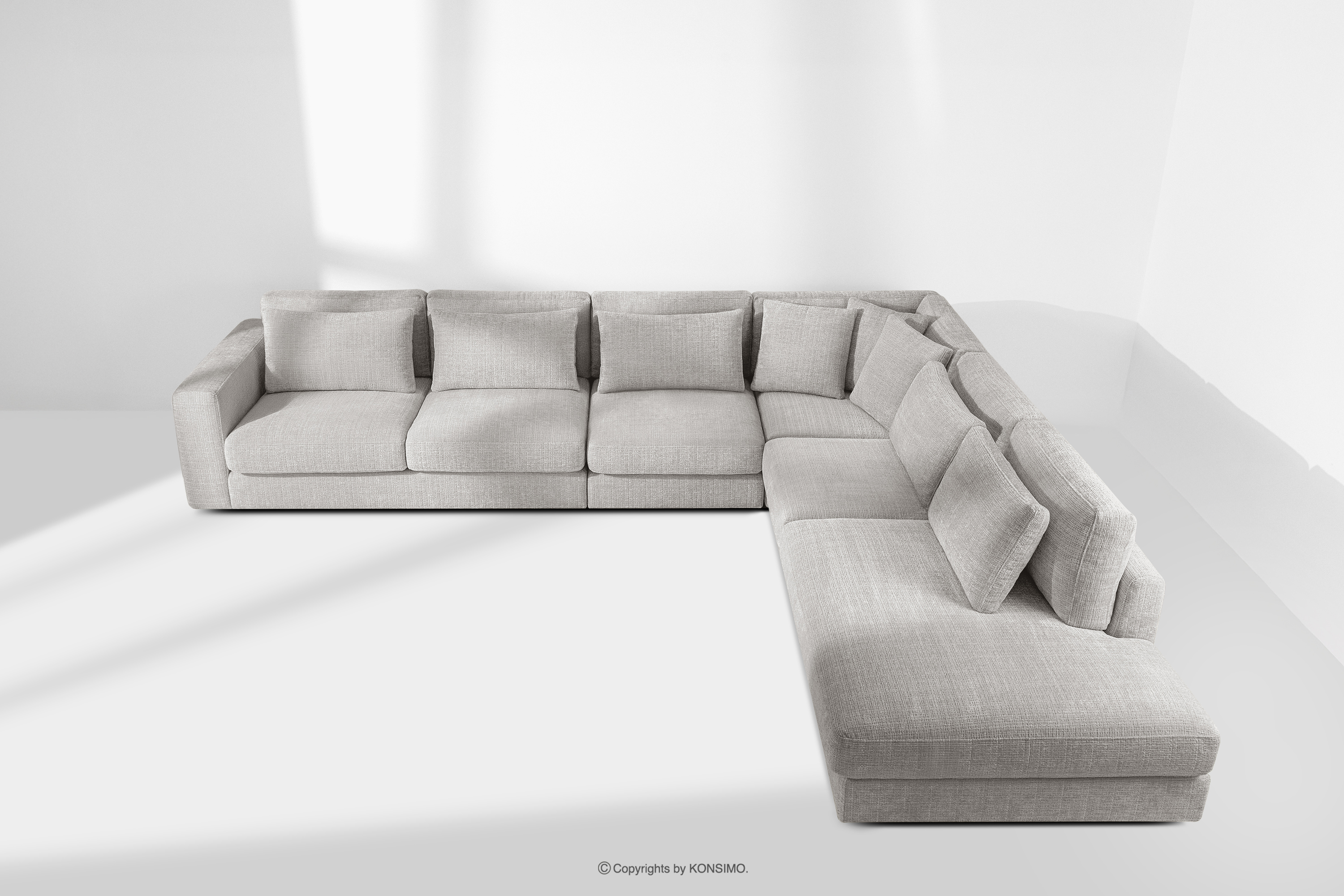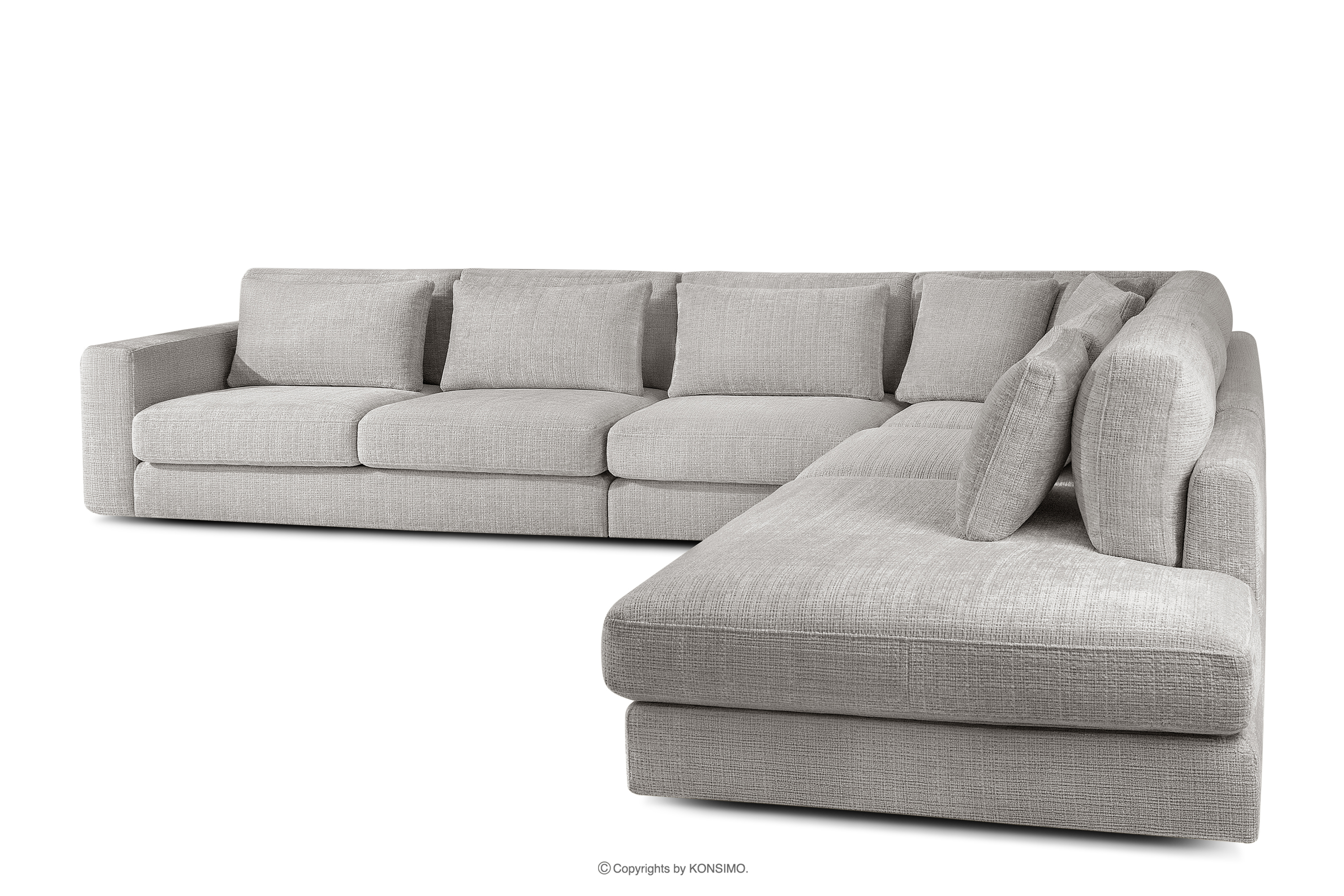 VERUS Veľká pohodlná rohová pohovka do obývacej izby šenilová látka pravá strana svetlo sivá