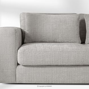 Veľká pohodlná rohová pohovka do obývacej izby šenilová látka pravá strana svetlo sivá je kvintesenciou nadčasovej elegancie a bezkonkurenčného pohodlia, navrhnutý s ohľadom na najnáročnejších používateľov. Je to kus nábytku, ktorý hrdo nesie názov „KLASICKÝ NAD KLASICKÝM“ a spája ušľachtilú tradíciu remeselného spracovania s inovatívnymi riešeniami zabezpečujúcimi maximálnu ergonómiu. Sedacia časť tejto výnimočnej rohovej pohovky je vyrobená z vysokokvalitných čalúnnických pásov a 17 cm hrubej peny HR 30/120, ktoré poskytujú pevný a pružný základ.
