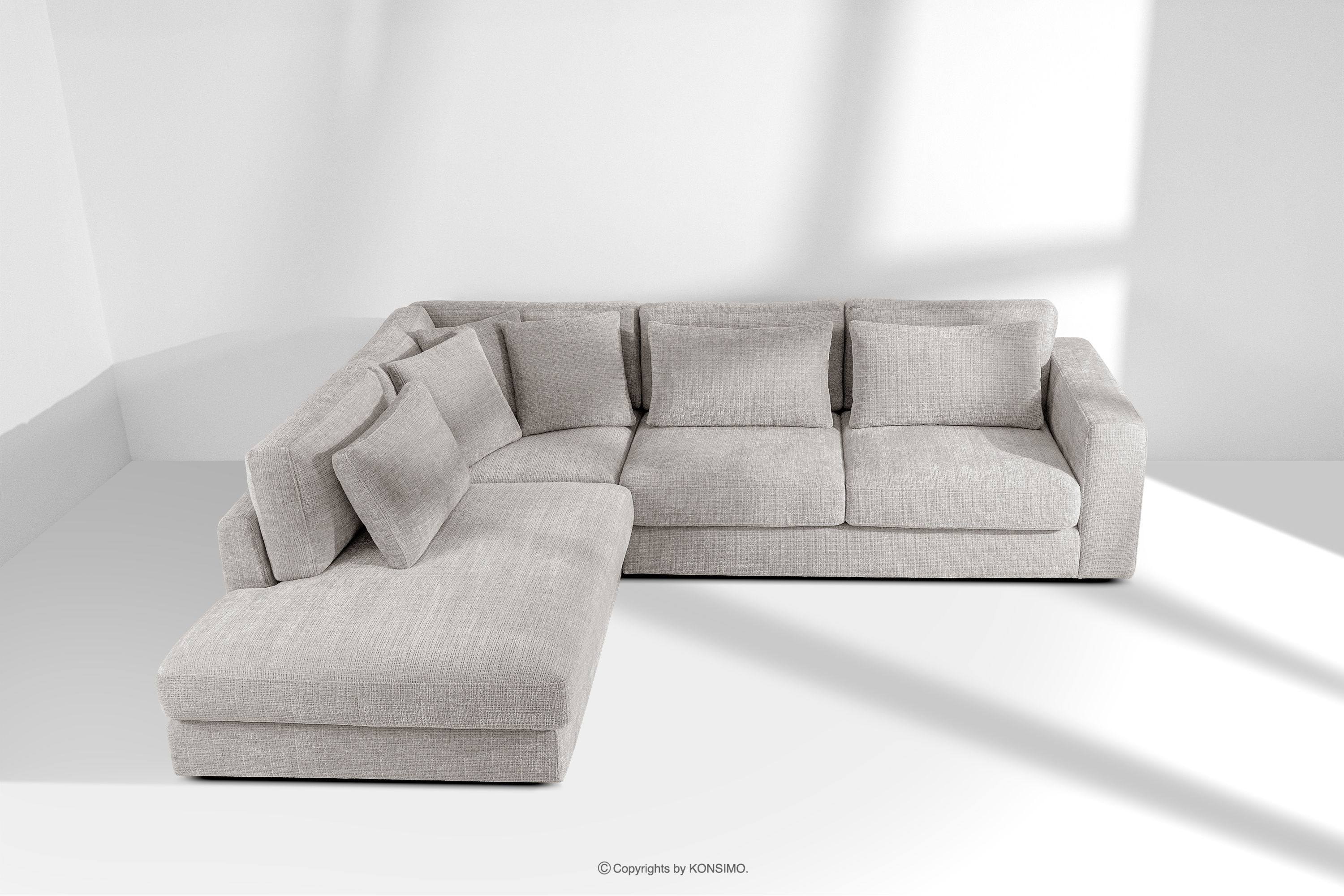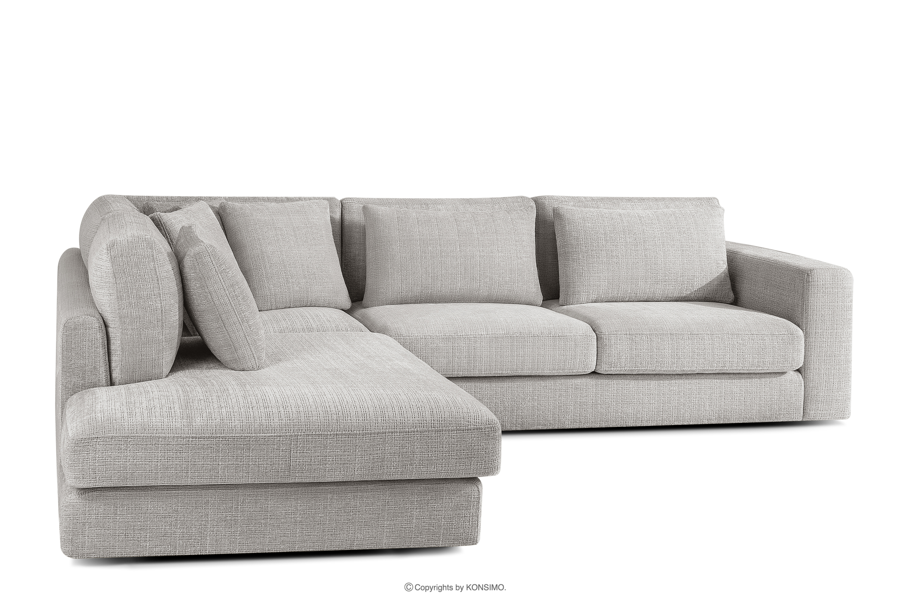 VERUS Veľká rohová pohovka do obývacej izby šenilová látka ľavá svetlo sivá
