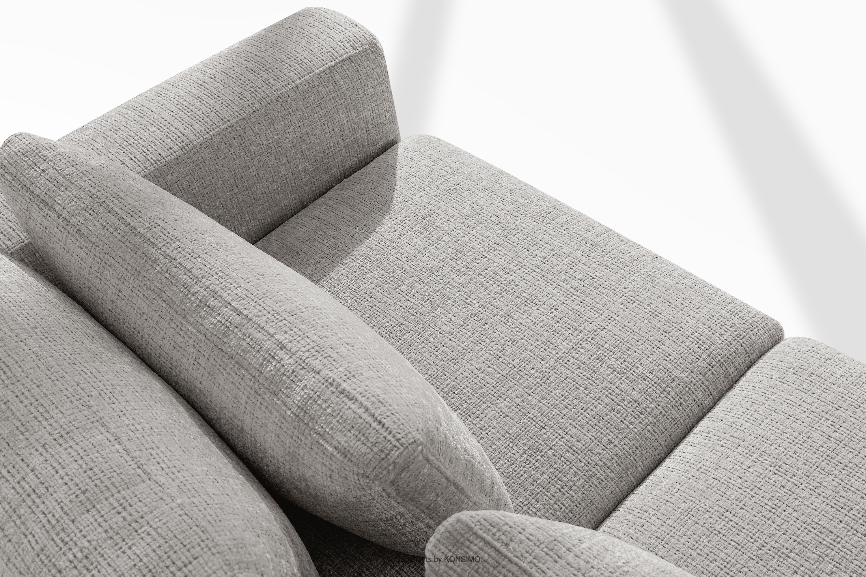 Veľká rohová pohovka do obývacej izby šenilová látka ľavá svetlo sivá je kvintesenciou nadčasovej elegancie a bezkonkurenčného pohodlia, navrhnutý s ohľadom na najnáročnejších používateľov. Je to kus nábytku, ktorý hrdo nesie názov „KLASICKÝ NAD KLASICKÝM“ a spája ušľachtilú tradíciu remeselného spracovania s inovatívnymi riešeniami zabezpečujúcimi maximálnu ergonómiu. Sedacia časť tejto výnimočnej rohovej pohovky je vyrobená z vysokokvalitných čalúnnických pásov a 17 cm hrubej peny HR 30/120, ktoré poskytujú pevný a pružný základ.