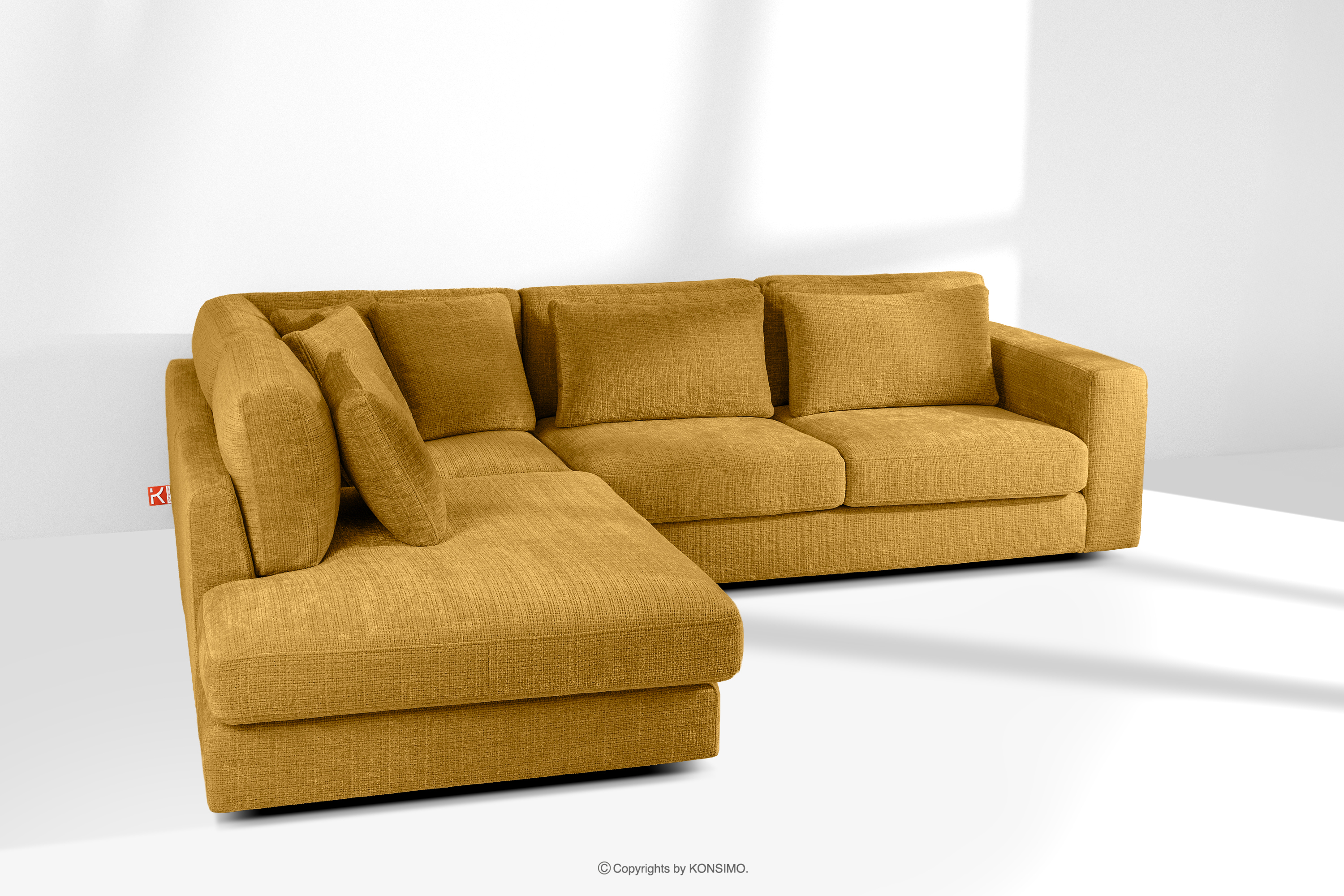 VERUS Objav celú kolekciu Veľká rohová sedačka zšenilová tkanina ľavá žltá- farba žltá