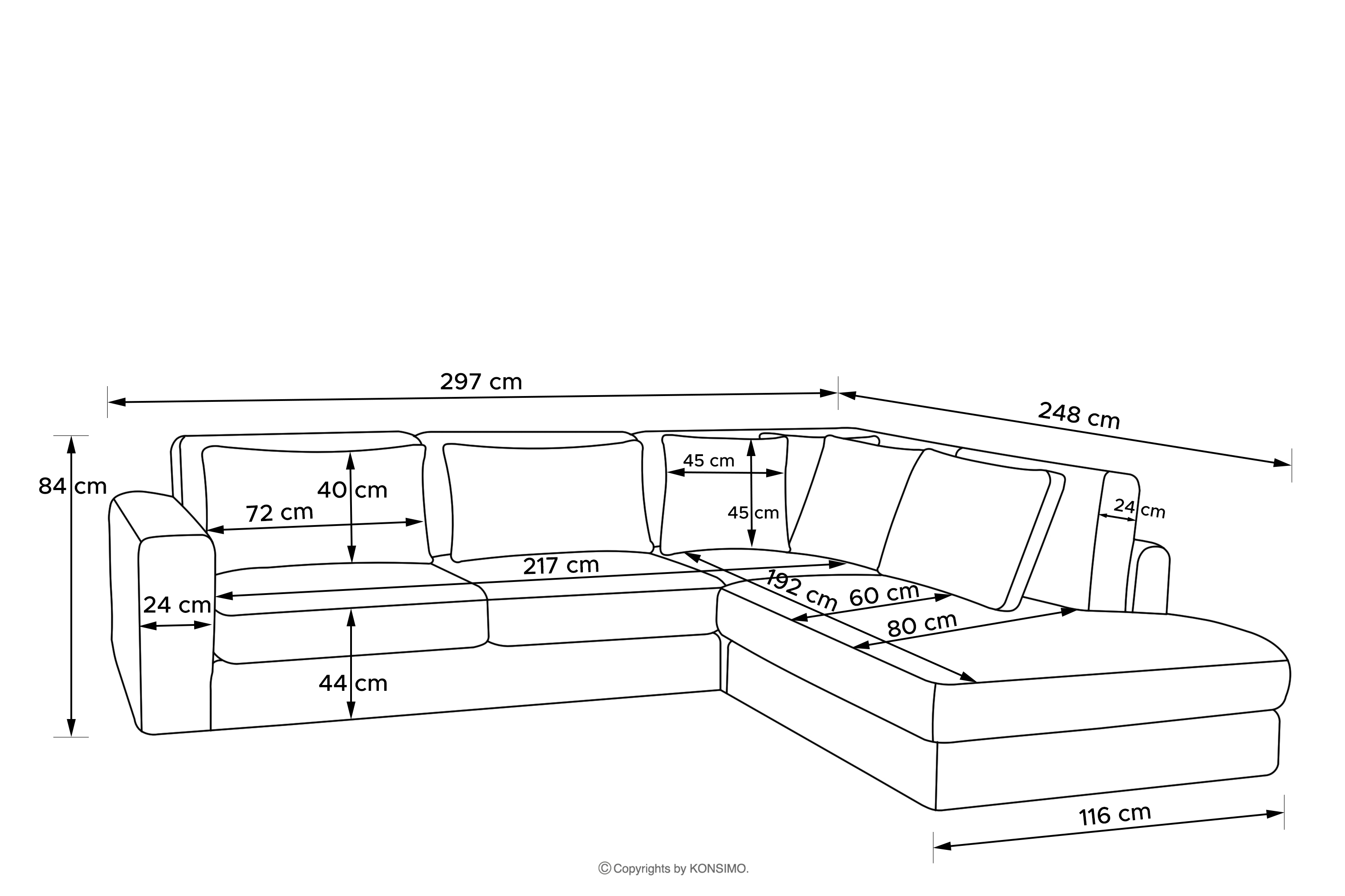 Pohodlná pravostranná rohová sedačka z tkanej látky tmavošedá je kvintesenciou nadčasovej elegancie a bezkonkurenčného pohodlia, navrhnutý s ohľadom na najnáročnejších používateľov. Je to kus nábytku, ktorý hrdo nesie názov „KLASICKÝ NAD KLASICKÝM“ a spája ušľachtilú tradíciu remeselného spracovania s inovatívnymi riešeniami zabezpečujúcimi maximálnu ergonómiu. Sedacia časť tejto výnimočnej rohovej pohovky je vyrobená z vysokokvalitných čalúnnických pásov a 17 cm hrubej peny HR 30/120, ktoré poskytujú pevný a pružný základ.