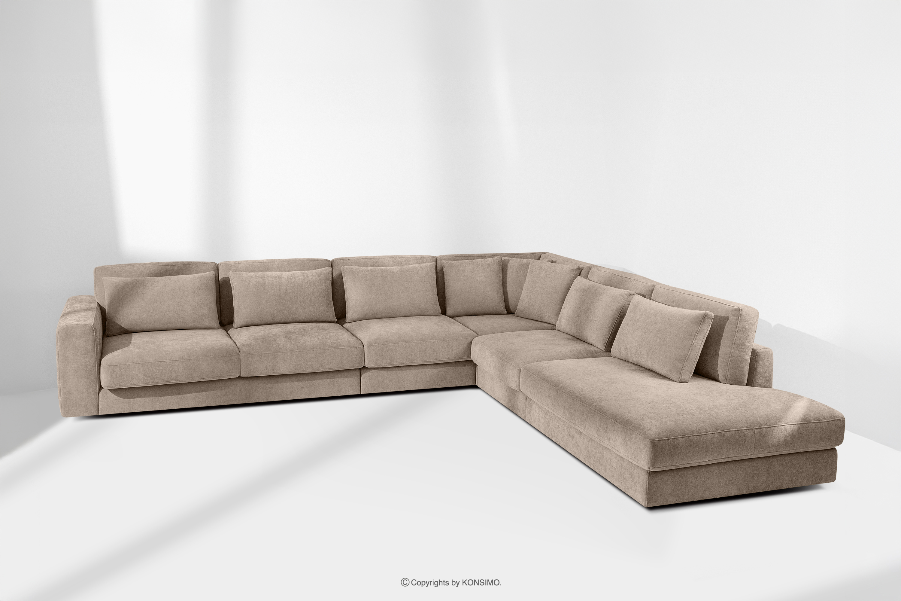 VERUS Veľká pohodlná rohová pohovka do obývacej izby tkaná látka pravá strana béžová