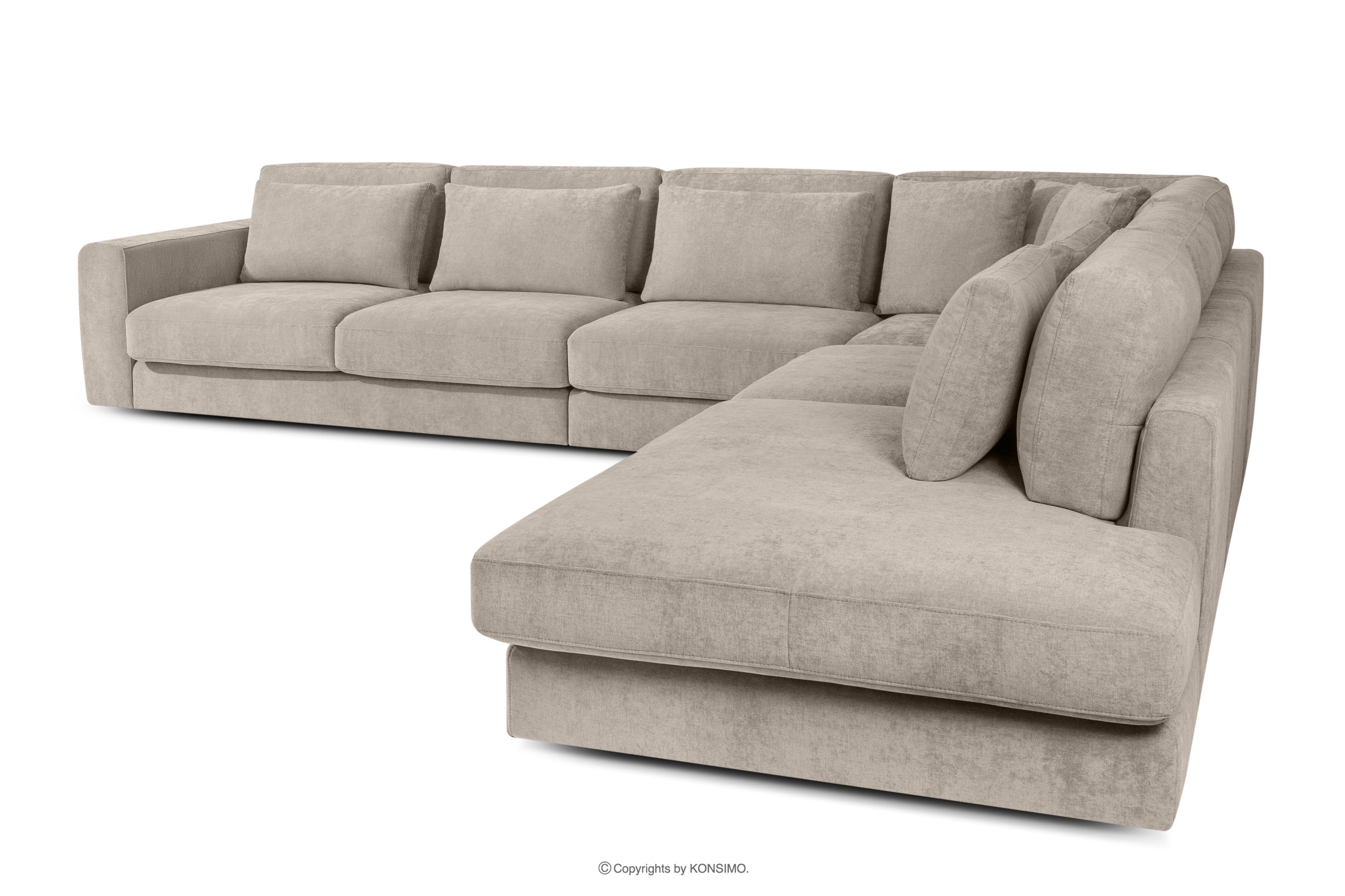 VERUS Veľká pohodlná rohová pohovka do obývacej izby tkaná látka pravá strana šedo-béžová