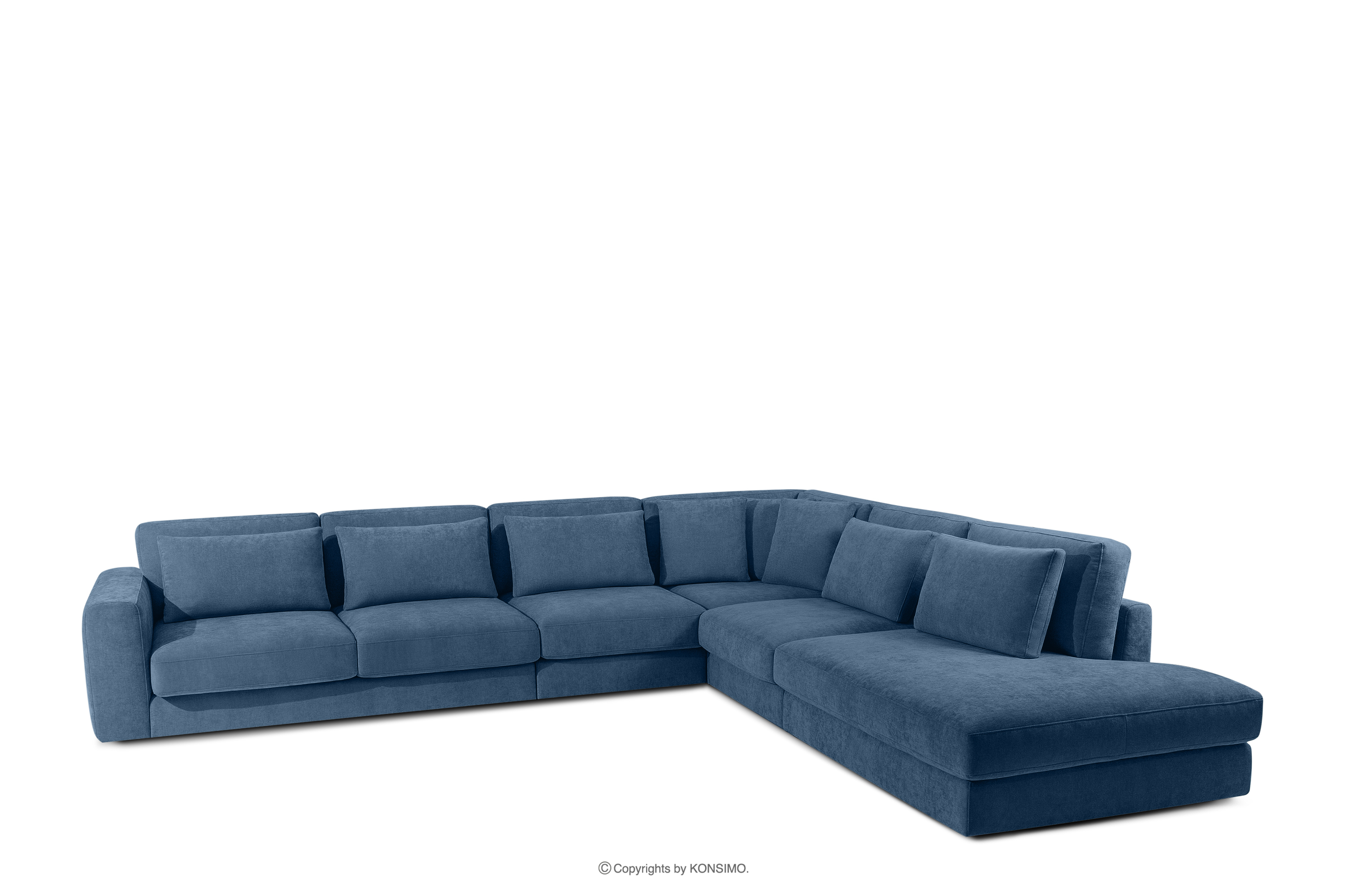 VERUS Veľká pravostranná rohová sedačka do obývacej izby z tkanej látky tmavomodrá
