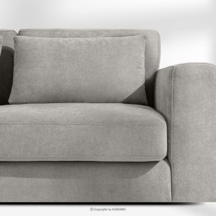 Veľká rohová pohovka do obývacej izby z tkanej látky ľavá svetlo sivá je kvintesenciou nadčasovej elegancie a bezkonkurenčného pohodlia, navrhnutý s ohľadom na najnáročnejších používateľov. Je to kus nábytku, ktorý hrdo nesie názov „KLASICKÝ NAD KLASICKÝM“ a spája ušľachtilú tradíciu remeselného spracovania s inovatívnymi riešeniami zabezpečujúcimi maximálnu ergonómiu. Sedacia časť tejto výnimočnej rohovej pohovky je vyrobená z vysokokvalitných čalúnnických pásov a 17 cm hrubej peny HR 30/120, ktoré poskytujú pevný a pružný základ.