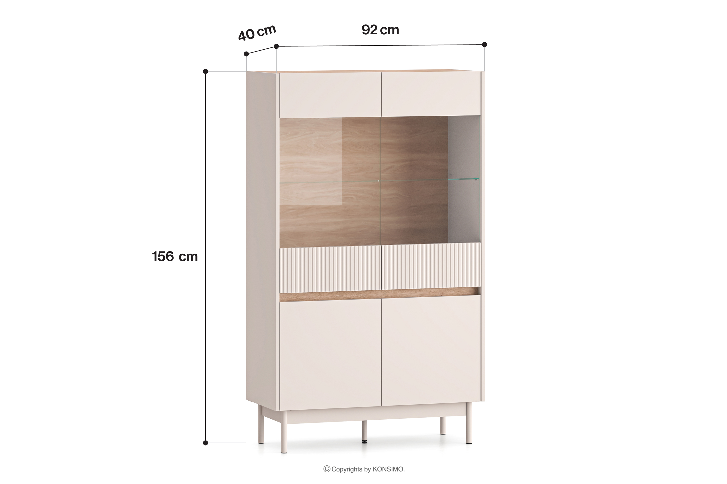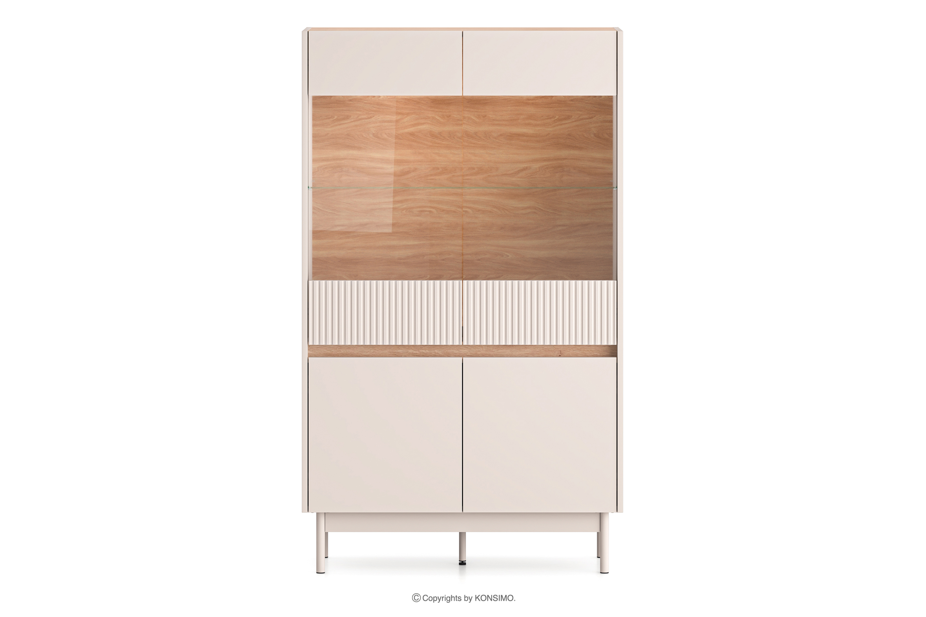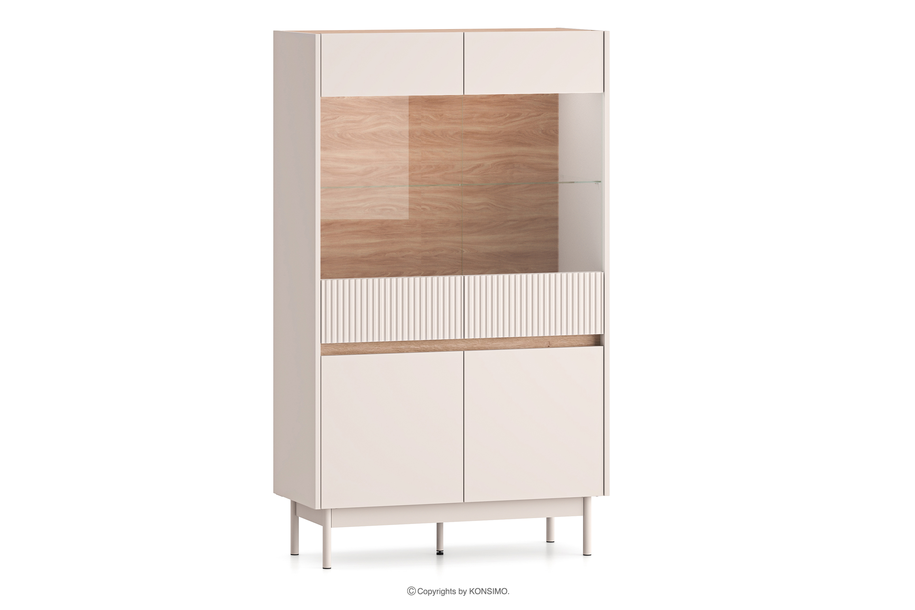 NALIA Objav celú kolekciu Elegantná veľká drážkovaná vitrína krémová/dub- farba krémová/dubová