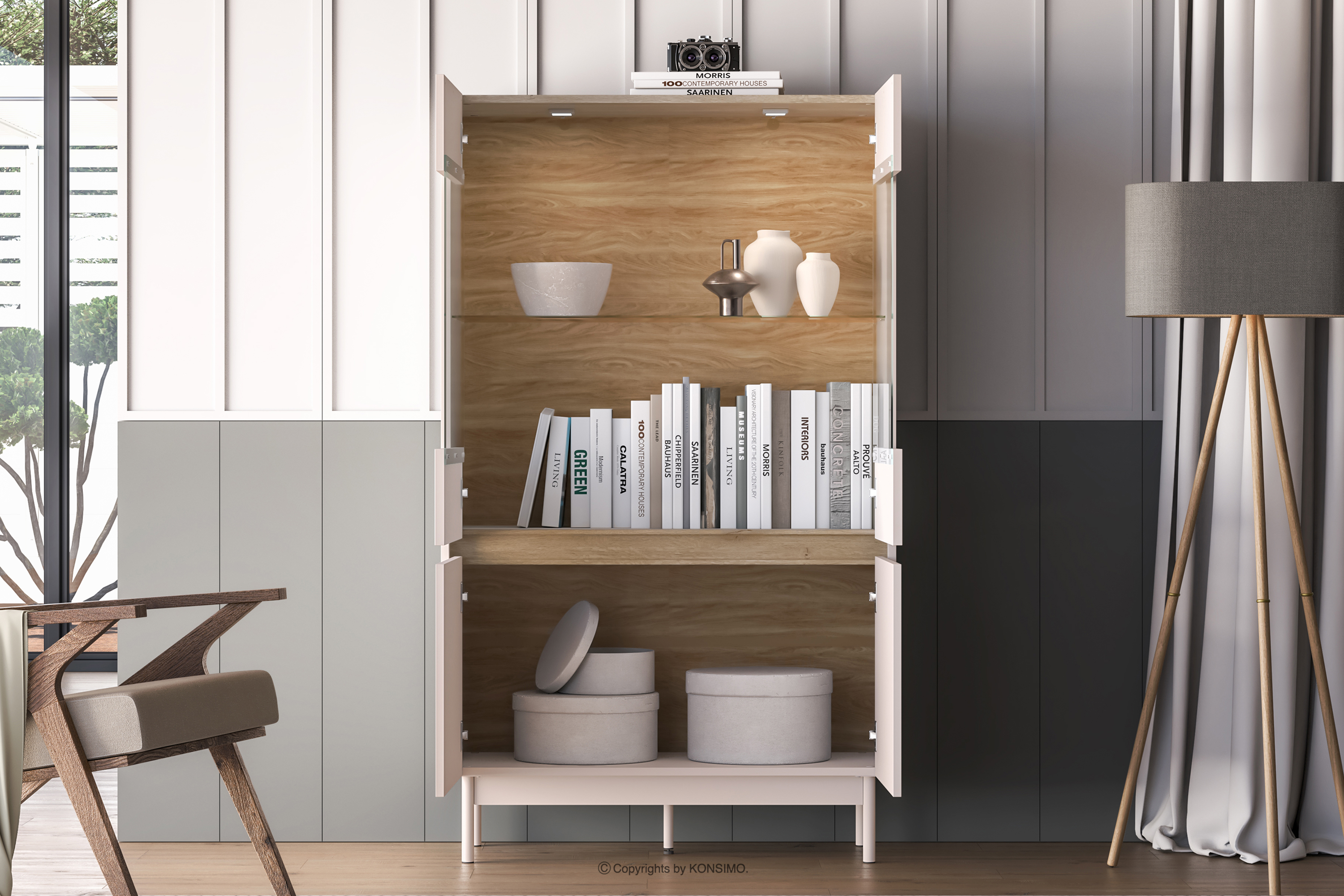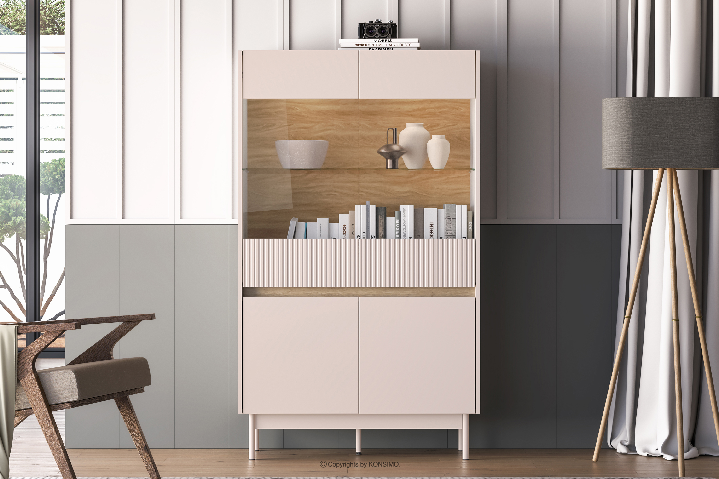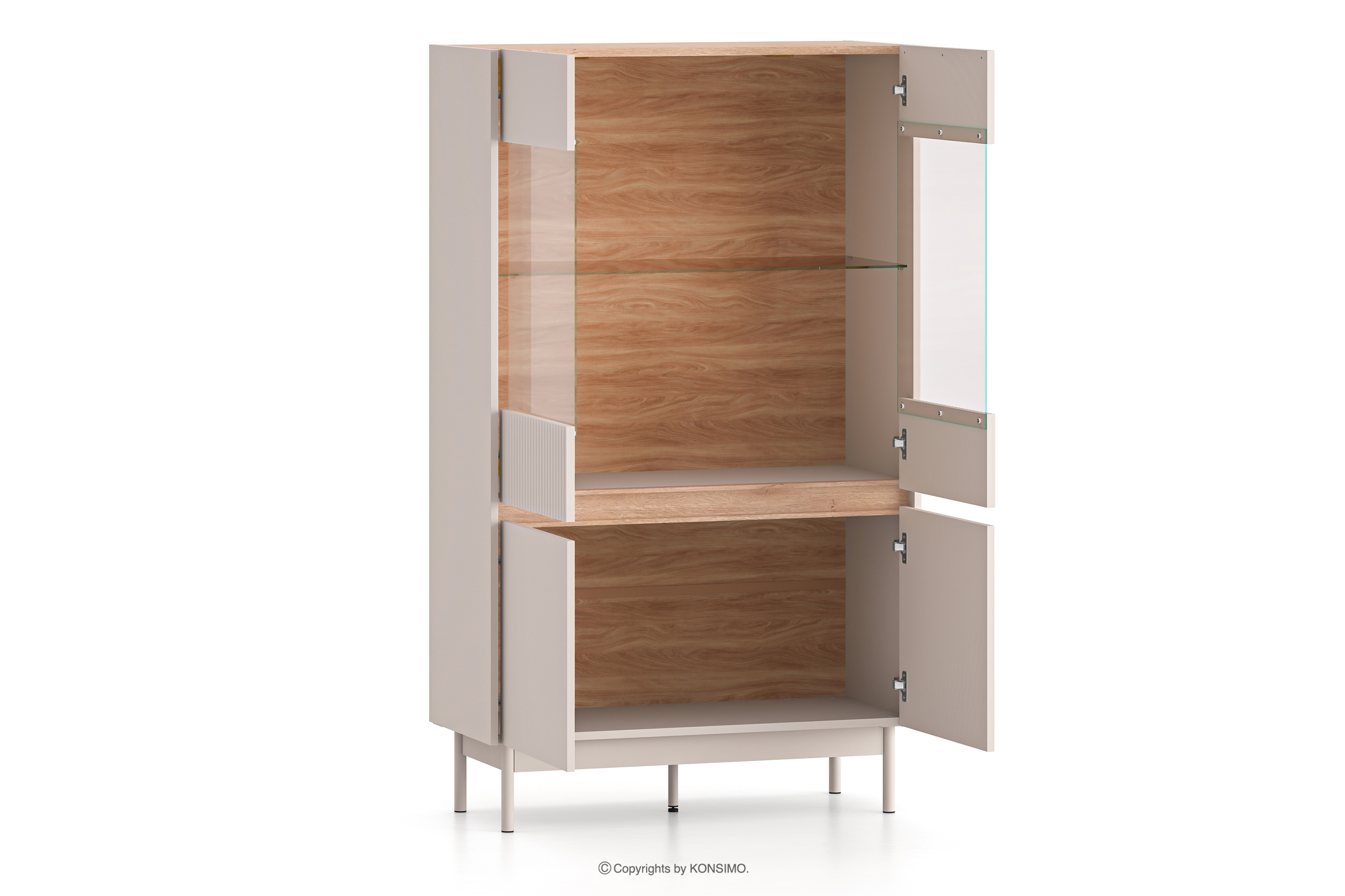 NALIA Objav celú kolekciu Elegantná veľká drážkovaná vitrína krémová/dub- farba krémová/dubová