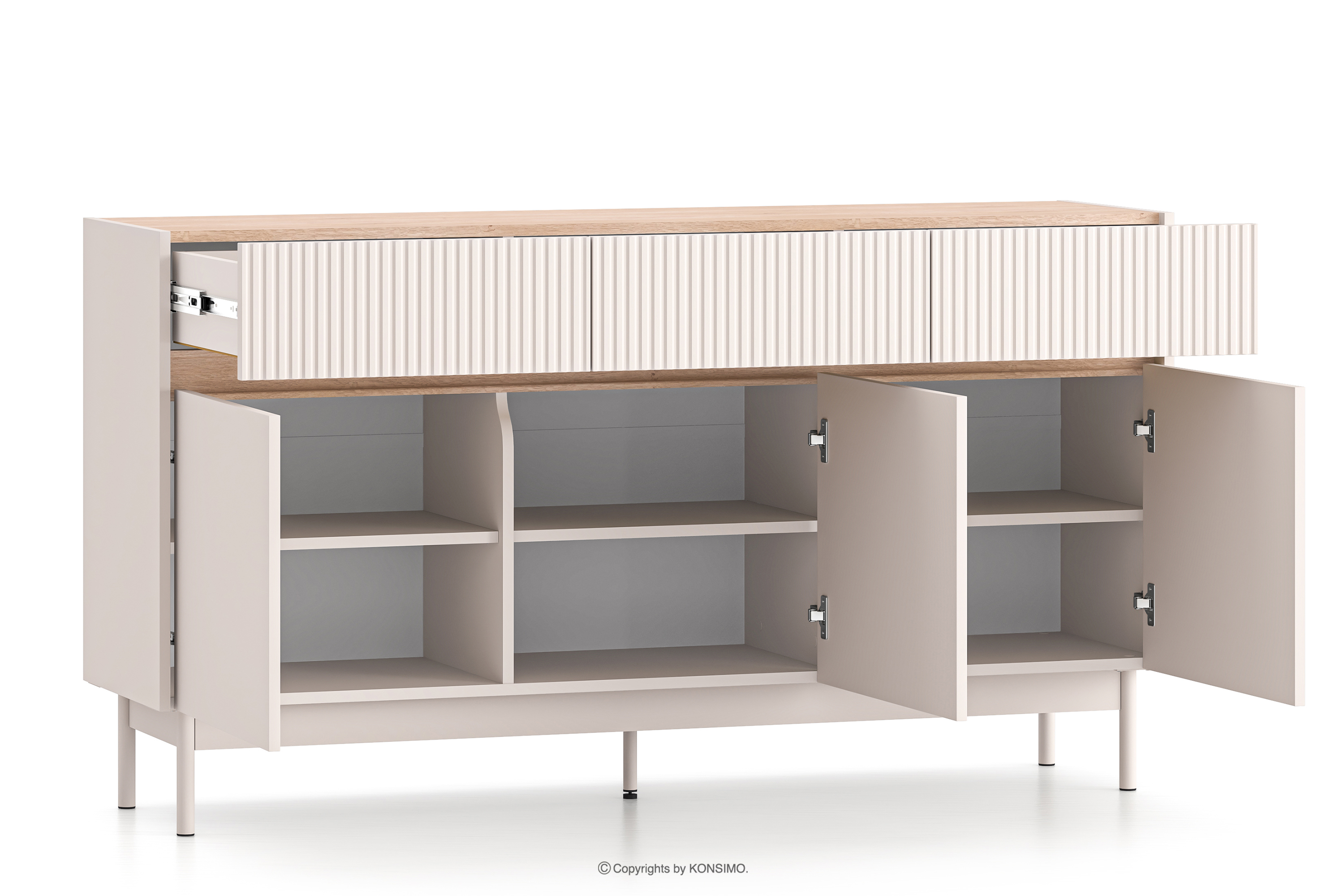 NALIA Objav celú kolekciu Elegantná veľká ryhovaná komoda krémová/dub- farba krémová/dubová