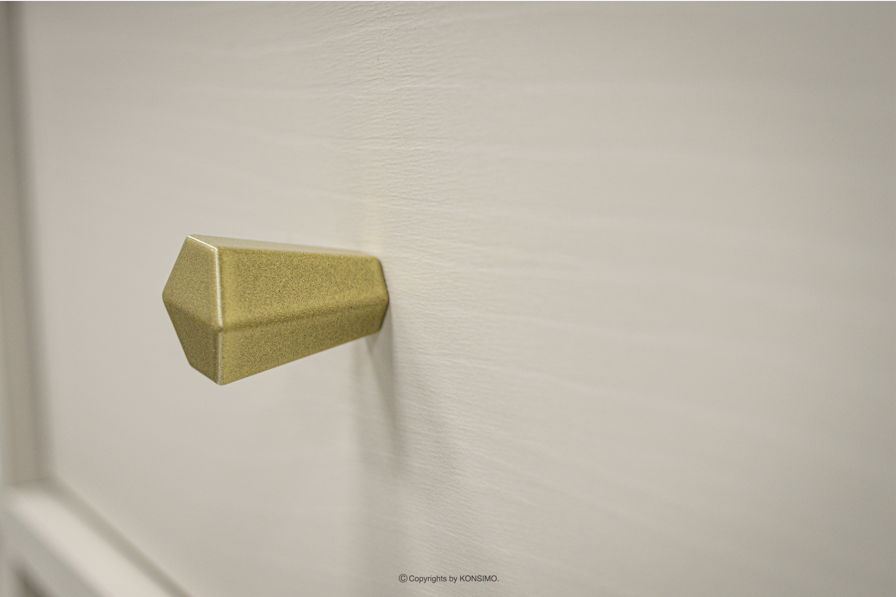 Moderná skrinka pod televízor na vysokých nožičkách krémová/zlatá je kvintesenciou moderného dizajnu spojeného s funkčnosťou a eleganciou, vytvoreného s ohľadom na súčasné obývacie izby, ktoré majú byť srdcom každého domu. Svetlá, krémová farebnosť nábytku v kombinácii so zlatými kovovými nožičkami vnáša do interiéru pocit ľahkosti a luxusu a zároveň zapadá do najnovších trendov v oblasti interiérového dizajnu.